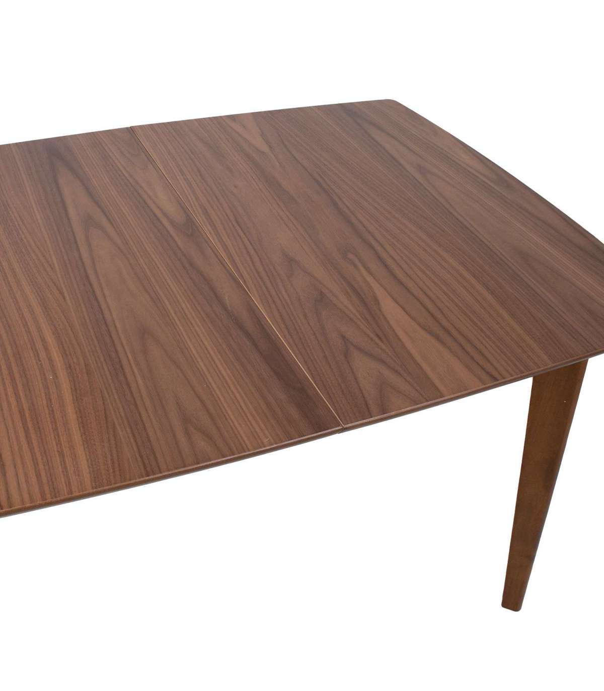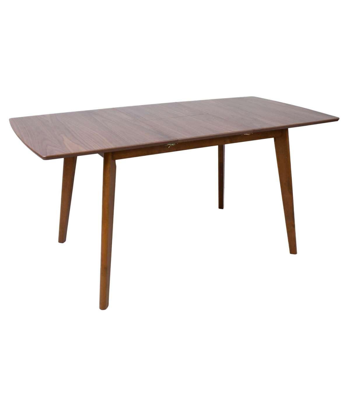 Söögilaud JESPER 120/160x80xH76cm. Lauaplaat: MDF naturaalse pähklispooniga. Laua jalad ja raam on valmistatud kummipuust. Laud on viimistletud pähkli toonis lakiga. Laud on keskelt pikendatav, 40cm lai keskelt kokku klapitav pikendusosa asub lauaplaadi all.