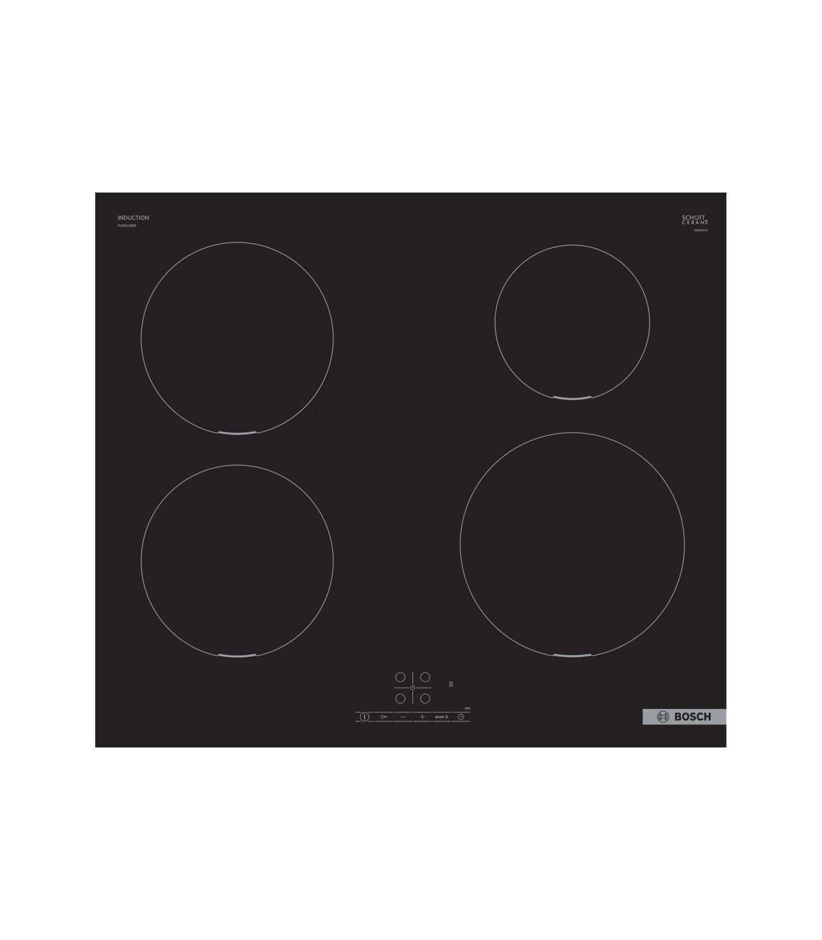 Bosch | Hob | PUE611BB5E | Induction | Number of burners/cooking zones 4 | Touch | Timer | Black