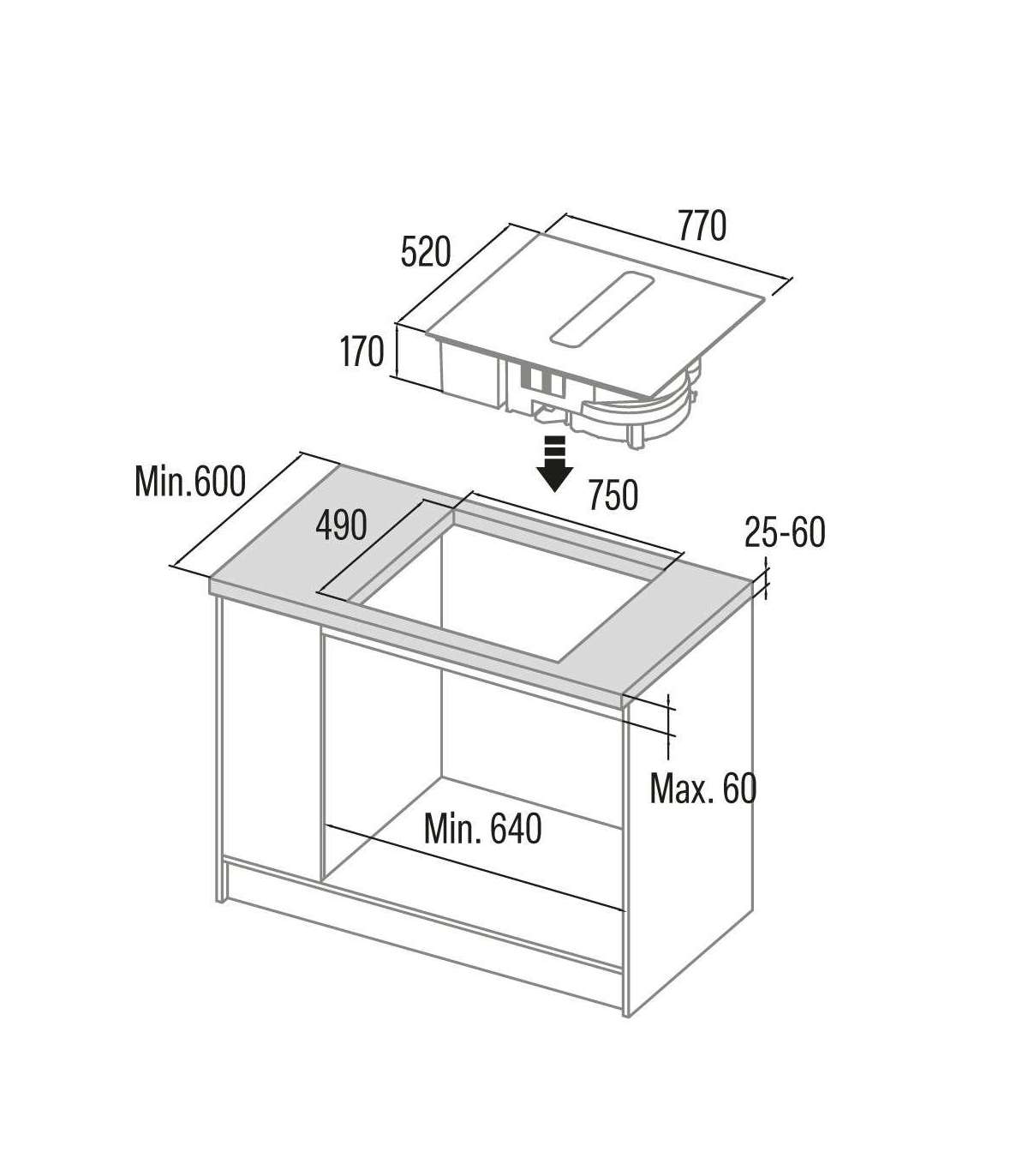 CATA | Hob with Hood | IAS 7024 | Induction | 77 cm | Number of burners/cooking zones 4 | Black | Slider
