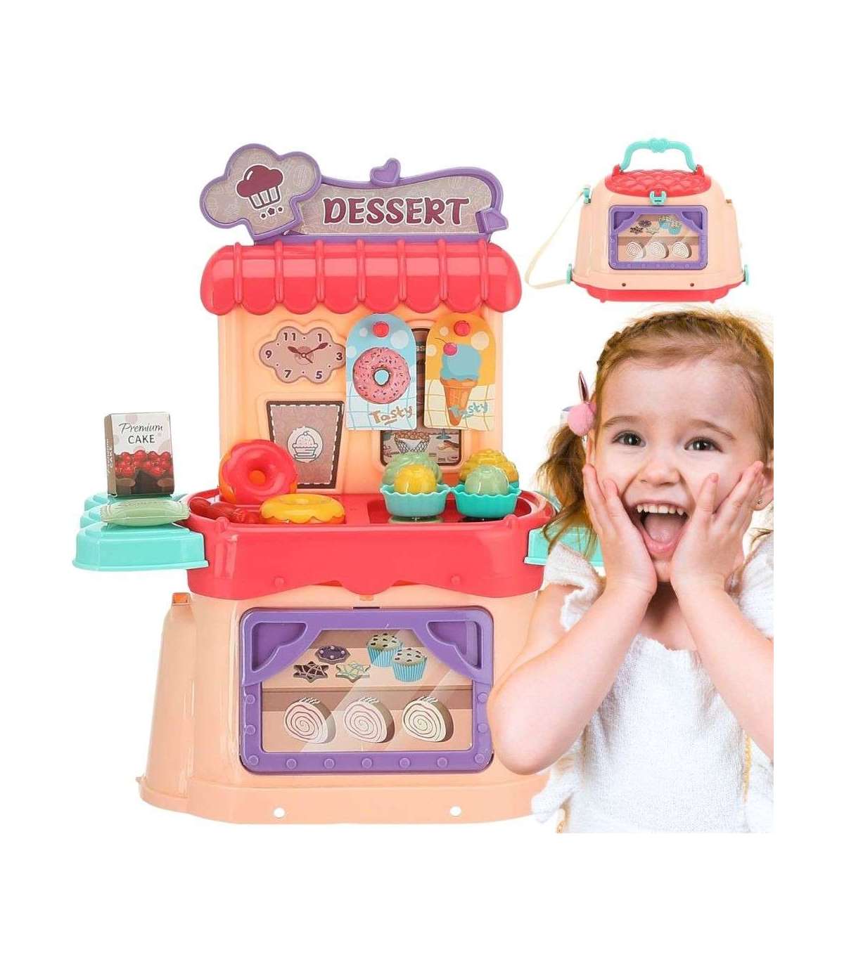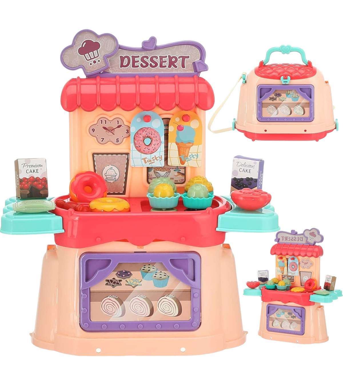 Väike kondiitrikomplekt 3-ühes brändilt WOOPIE võimaldab teie lapsel mängida kokka, müüjat ja jäätisemüüjat kõikjal ja igal ajal! Lapsed armastavad vanematele köögis aidata ja koos sõpradega poodi mängida, seega on see ideaalne komplekt iga väikesele. Komplekt sisaldab 25 osa: kõik vajalikud esemed, mida igal jäätisekohvikul on. Mänguasi toimib kohvrina, mida saab muuta ka kotiks - võimaldades võtta kõikjale kaasa oma kaasaskantava jäätisekohviku. Rollimäng ja vanemate/ametite järele tegemine arendavad teie lapse kujutlusvõimet ja loovust.