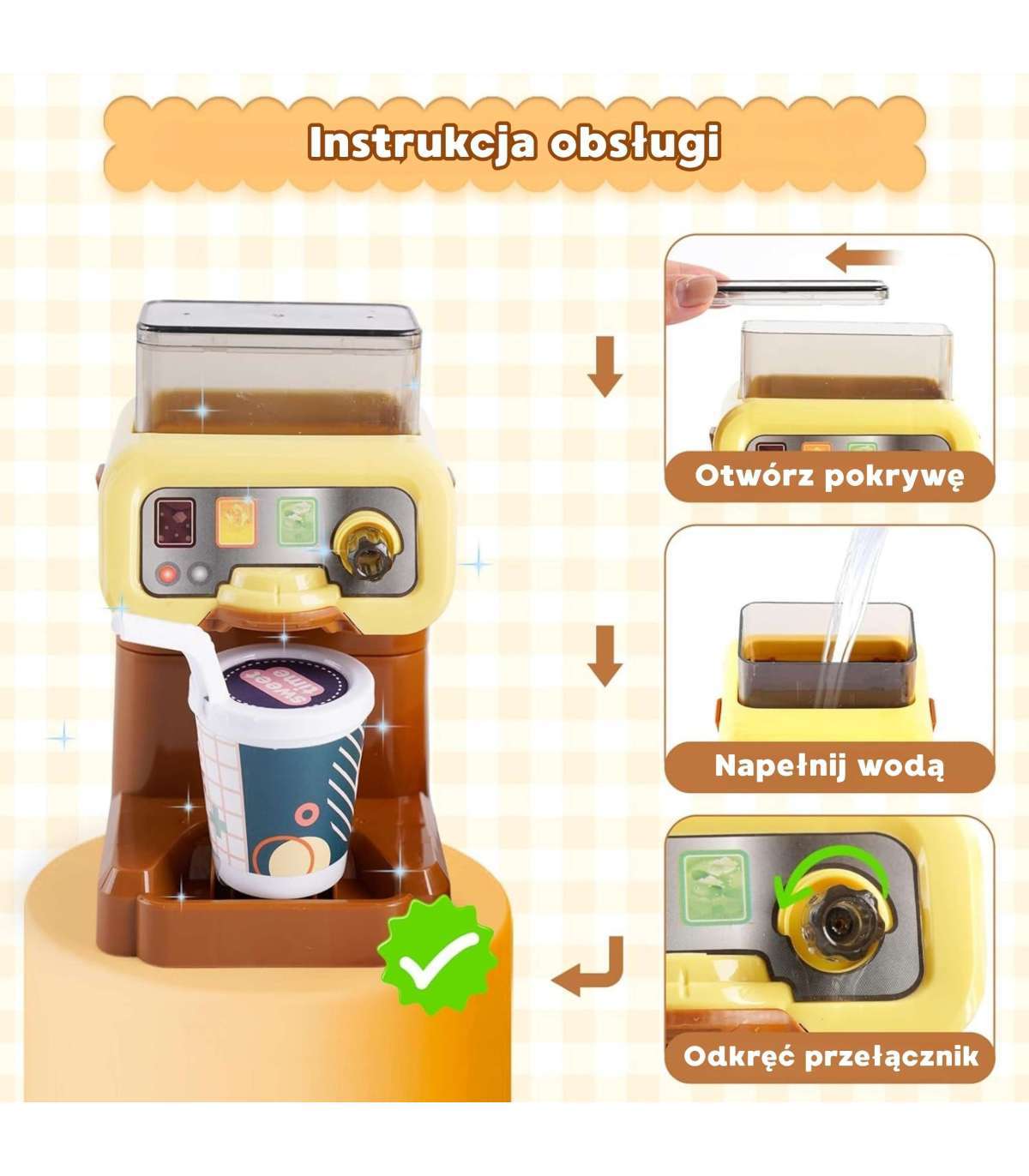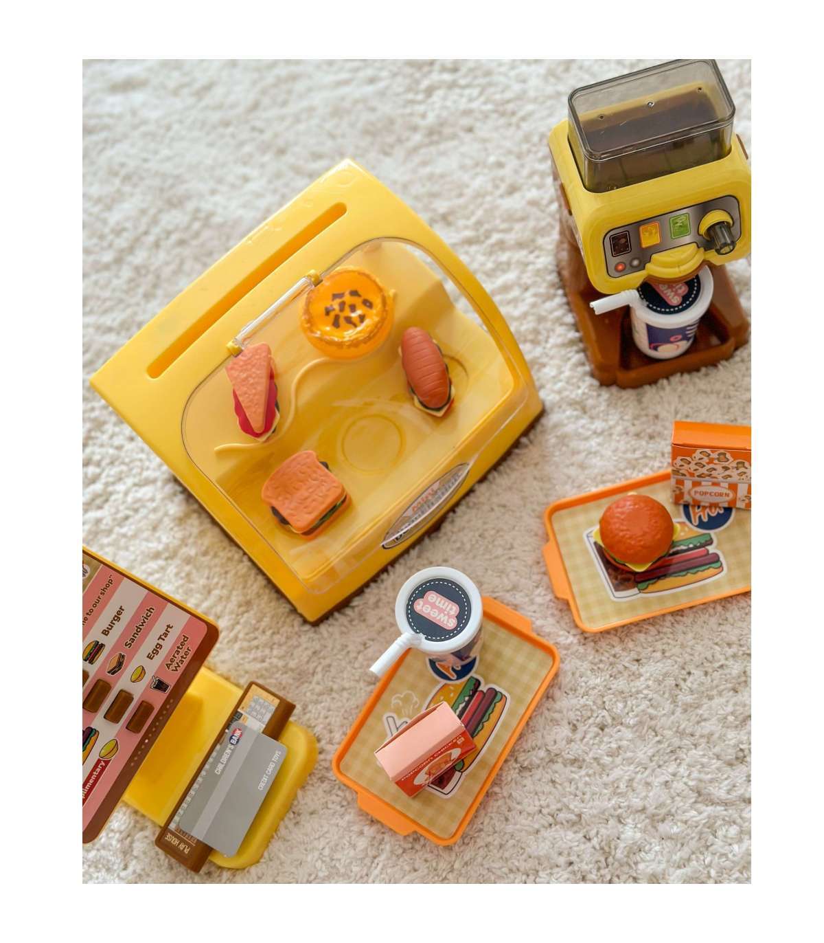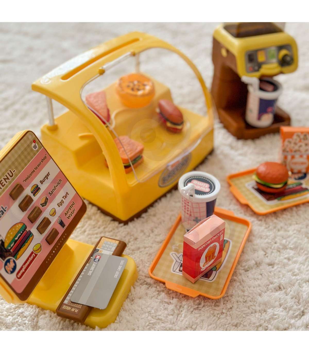 Mini Burger Shop "BIG BURGER" brändilt WOOPIE on suurepärane mängukomplekt. Saame teenindada kliente, kes valivad toite otse valgustatud leti pealt! Sellel on ekraan nuppudega, mille vajutamisel mängib pood heli-efekte! Saame vett valada jaoturisse ja kallata seda spetsiaalsetesse kruusidesse koos kõrrega. Komplekt arendab peenmotoorikat, kujutlusvõimet, loovust ja iseseisvat mõtlemist.