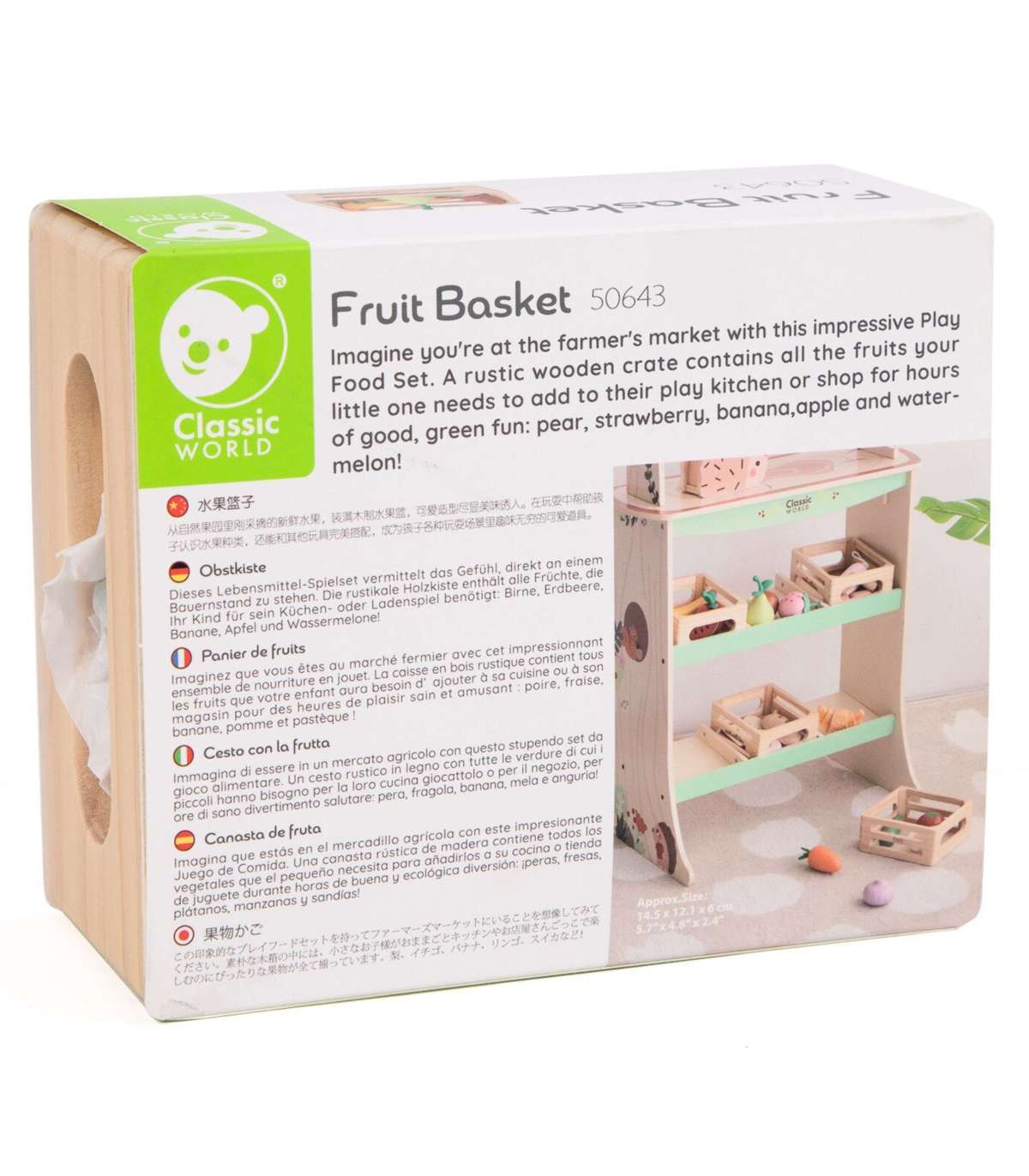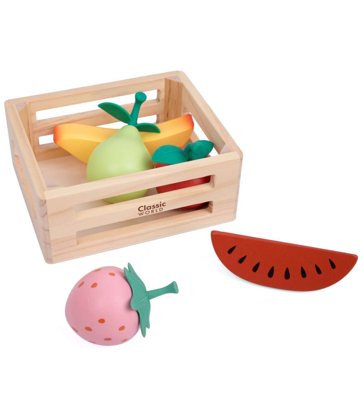 Classic World'i puuviljakorv on komplekt lastele, kes armastavad loomingulist mängu köögis või poes. Puidust osad, mis kujutavad erinevaid puuvilju, võimaldavad vabalt rollimänge mängida, arendades kujutlusvõimet ja sotsiaalseid oskusi. Iga komplekti osa on valmistatud kõrgkvaliteetsest puidust. Komplekt sobib suurepäraselt nii iseseisvaks mänguks kui ka koos eakaaslaste või täiskasvanutega mängimiseks.