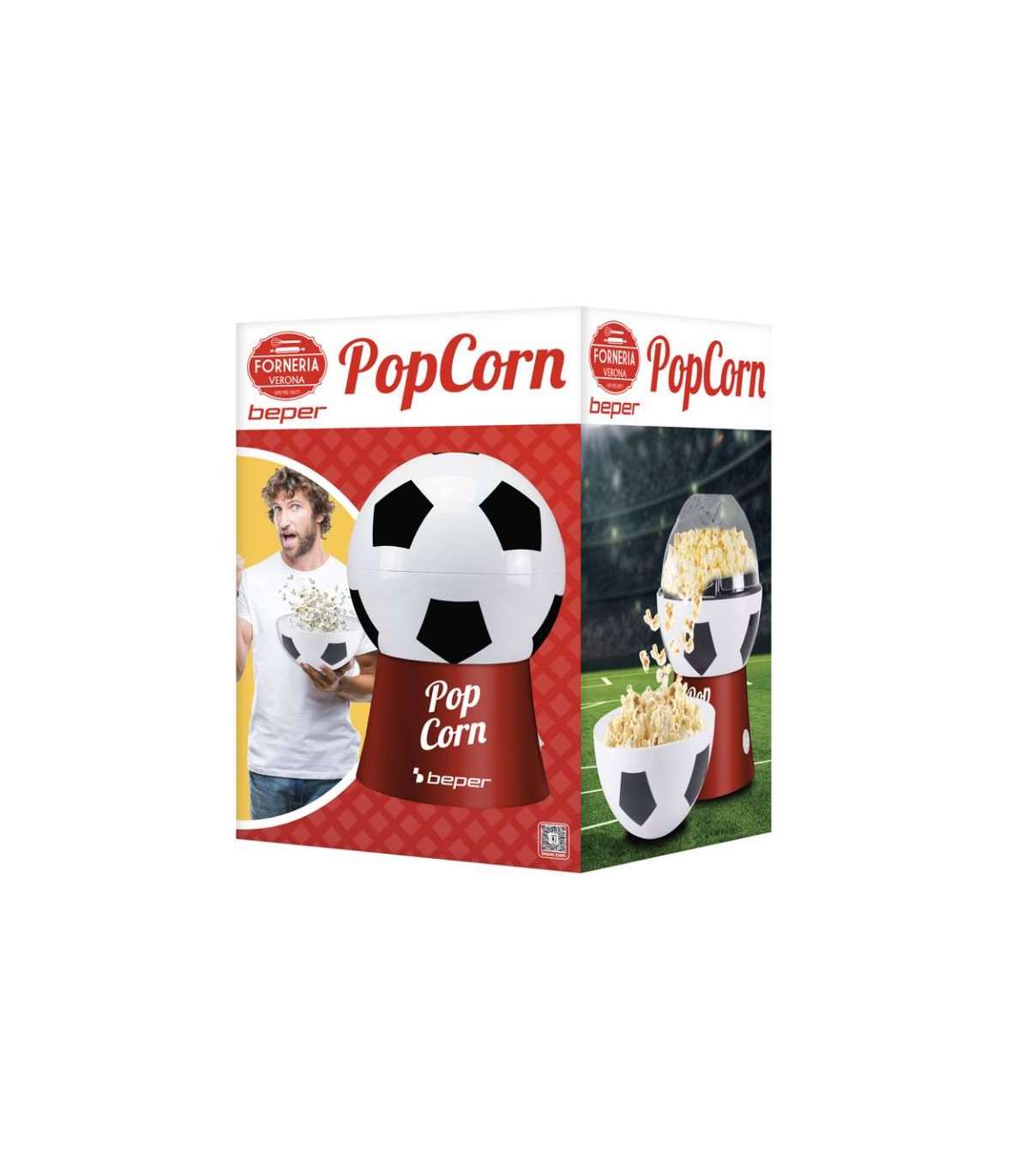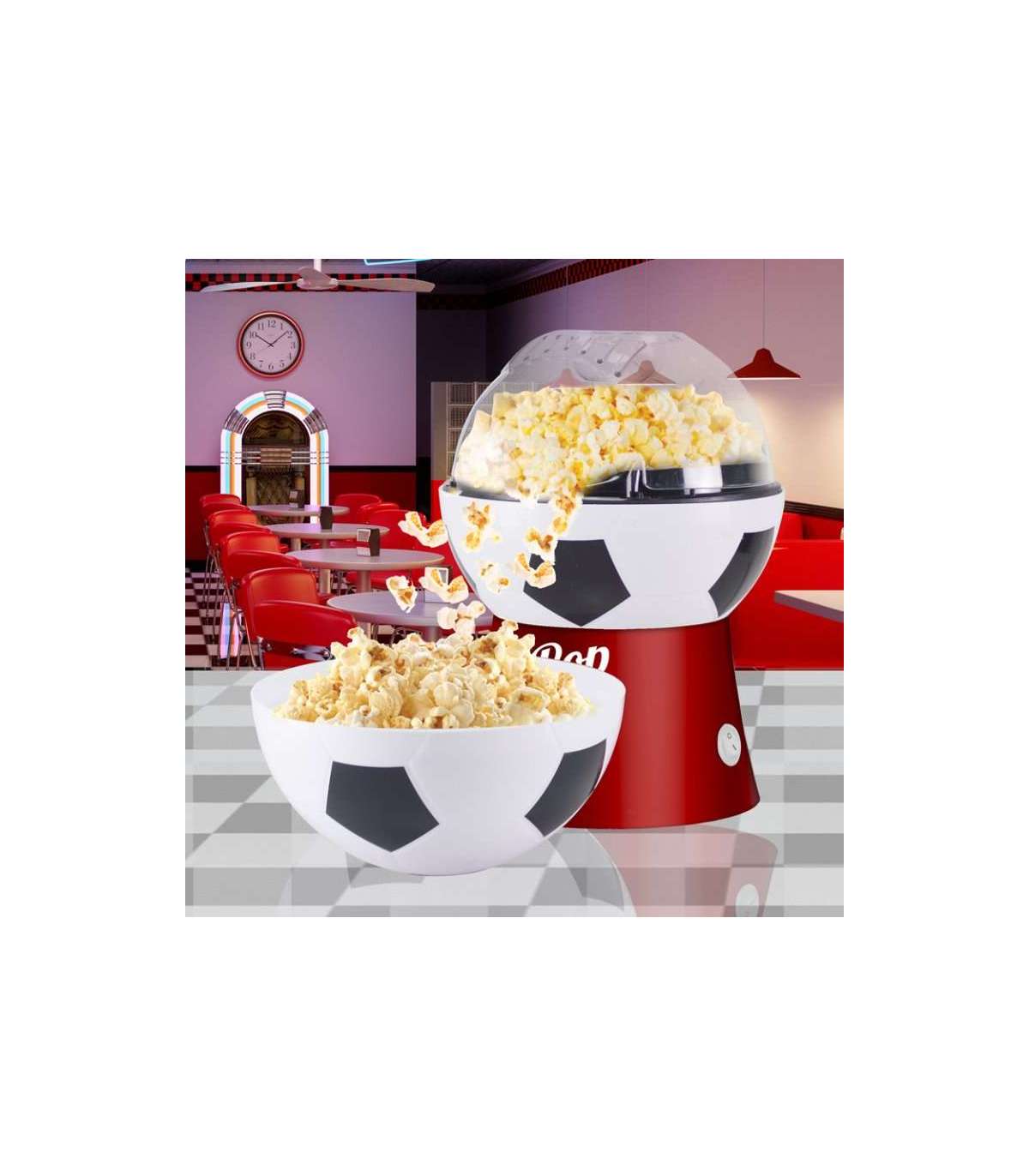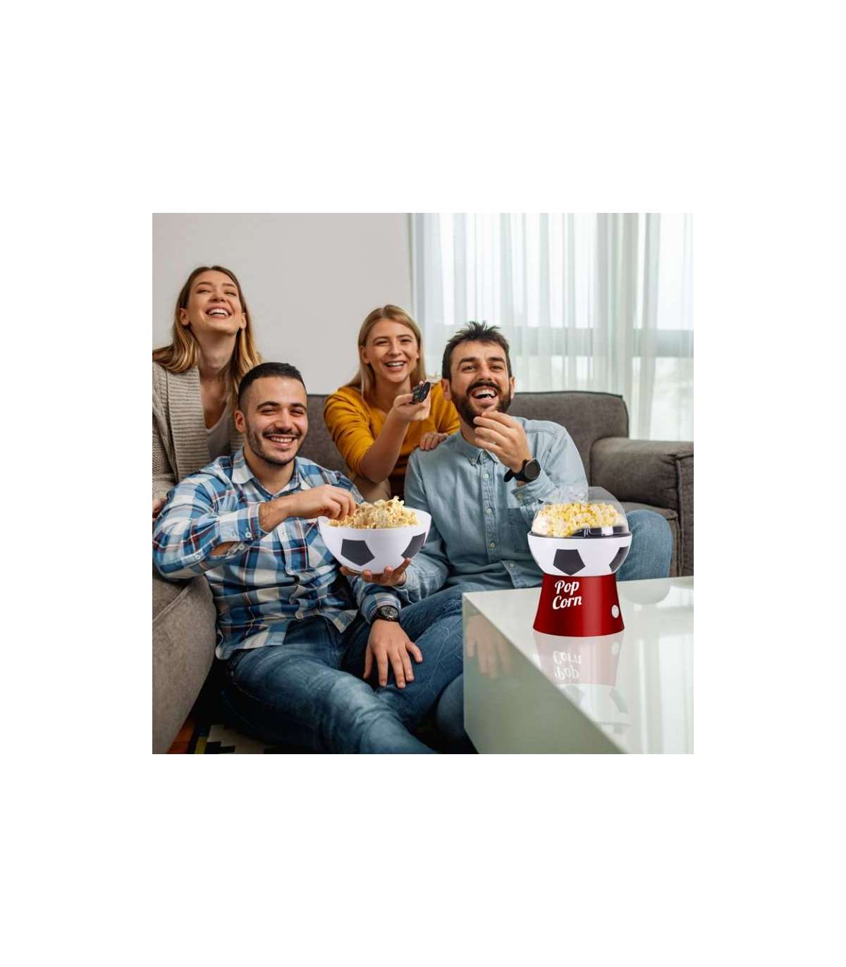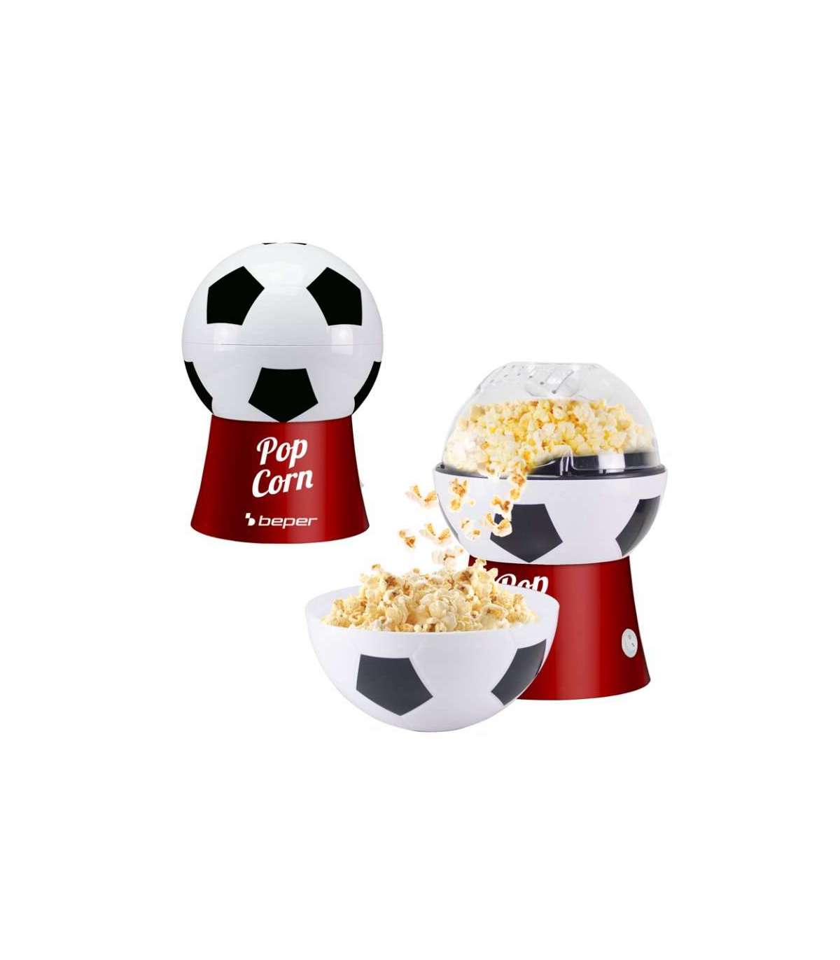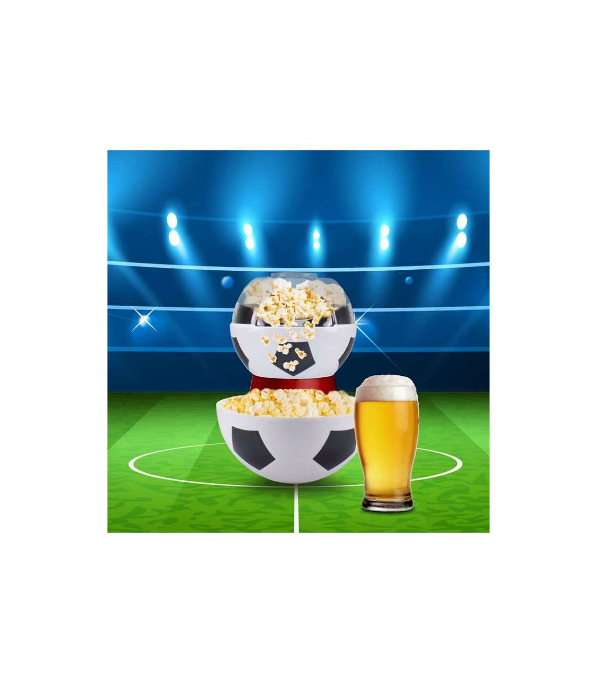 Ideaalne nii jalgpallifännidele kui ka teistele fännidele, see kasutab kuuma õhu tsirkulatsiooni, et valmistada maitsvat popkorni vähem kui 3 minutiga, ilma rasva lisamata.