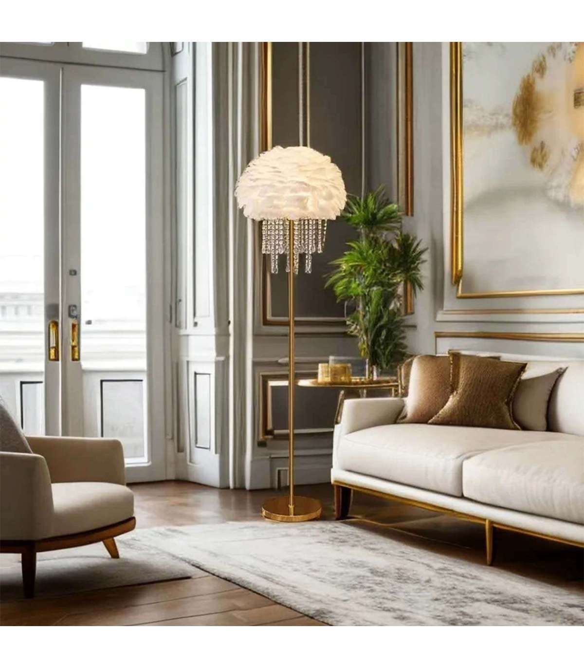 Põrandalamp FEATHER H150cm valge, ripatsitega