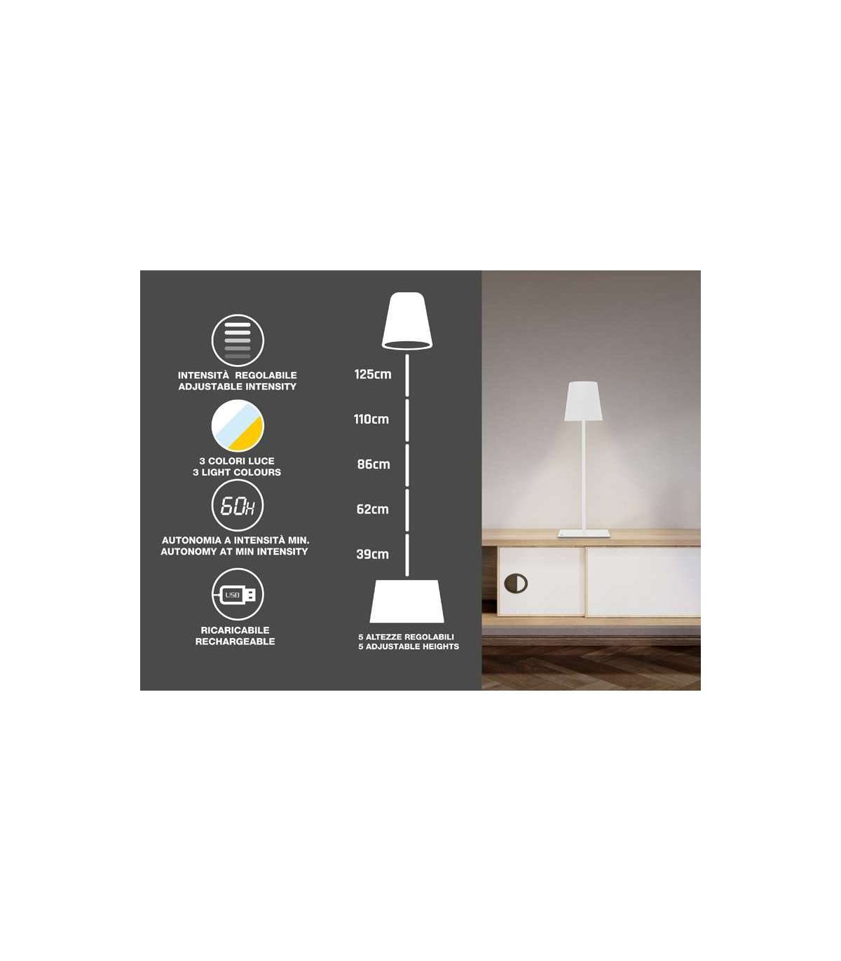 Reguleeritav kõrgus 5 varreosa kaudu võimaldab selle paigutada igasse maja nurka.