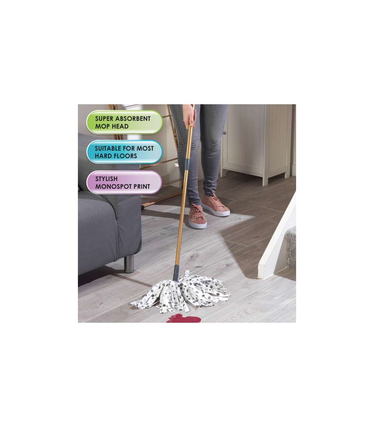 Stiilse täpilise prindipeaga kogub see mustuse ja hoiab seda endas, mitte ei suru seda mööda põrandat, et tagada tõhus puhastus.