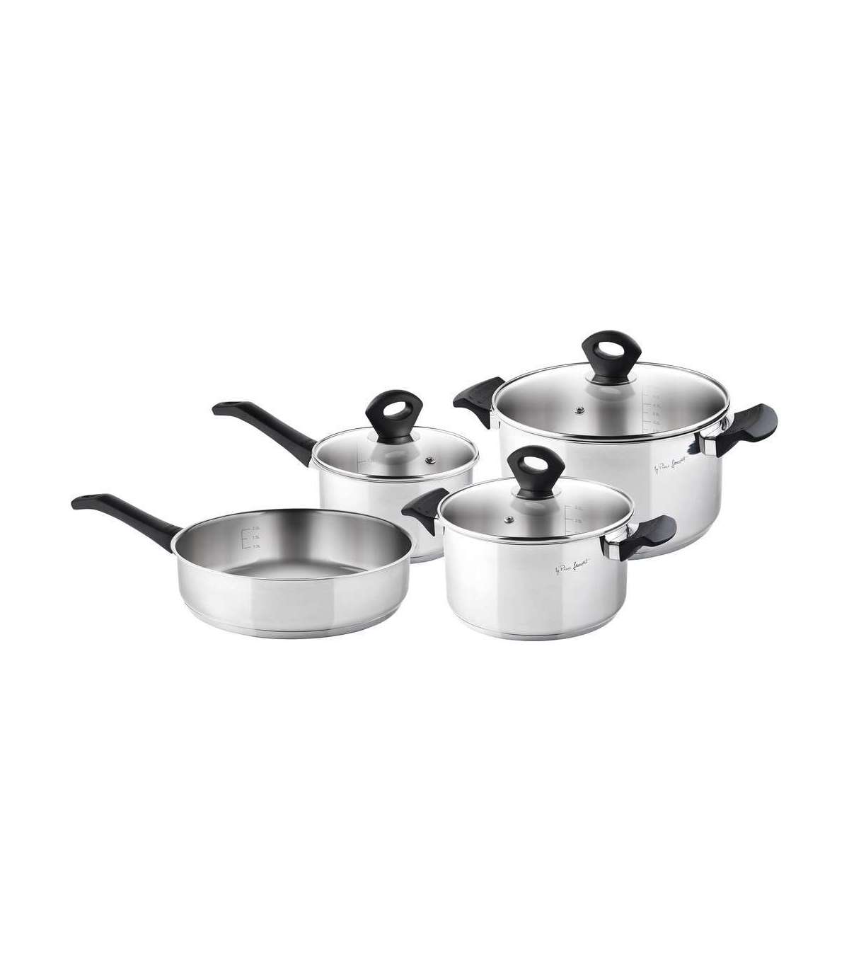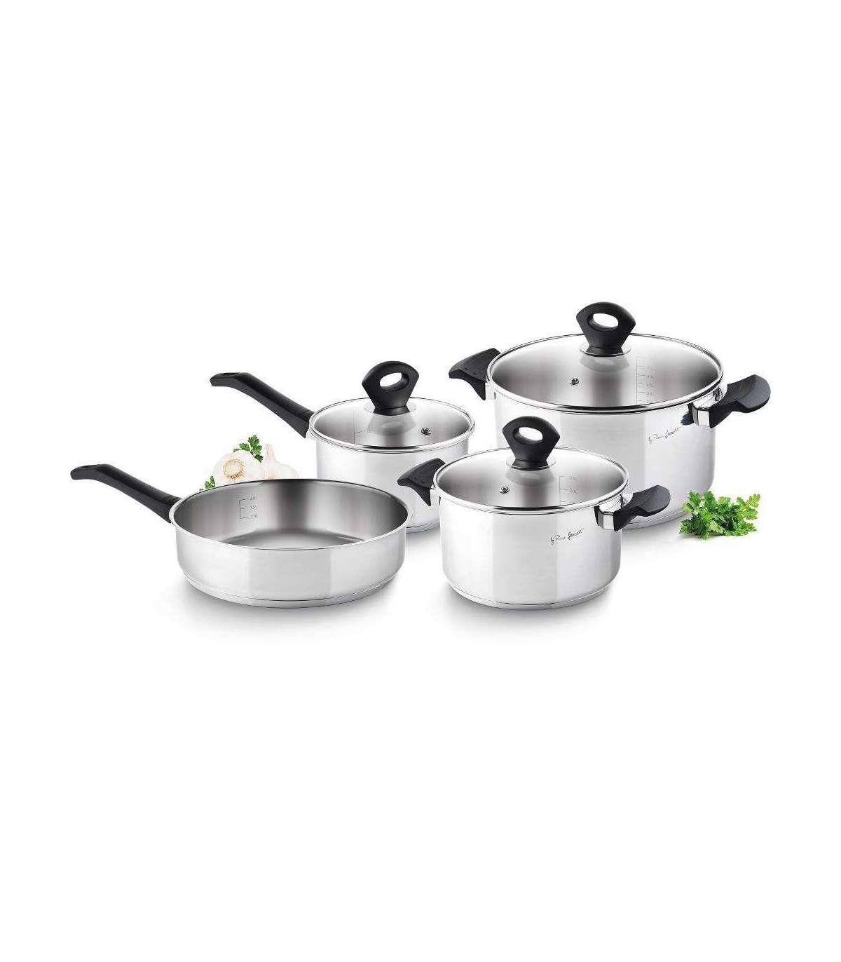 Paksud potipõhjad, elegantsed käepidemed ja vastupidavad auruväljundiga klaasist potikaaned.