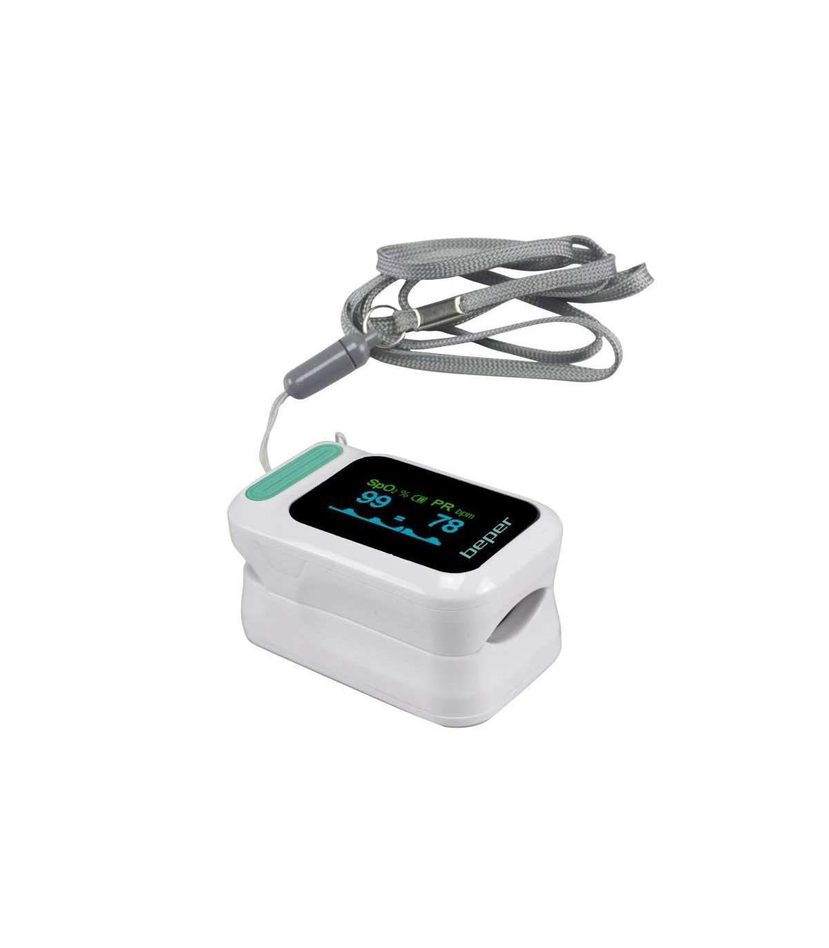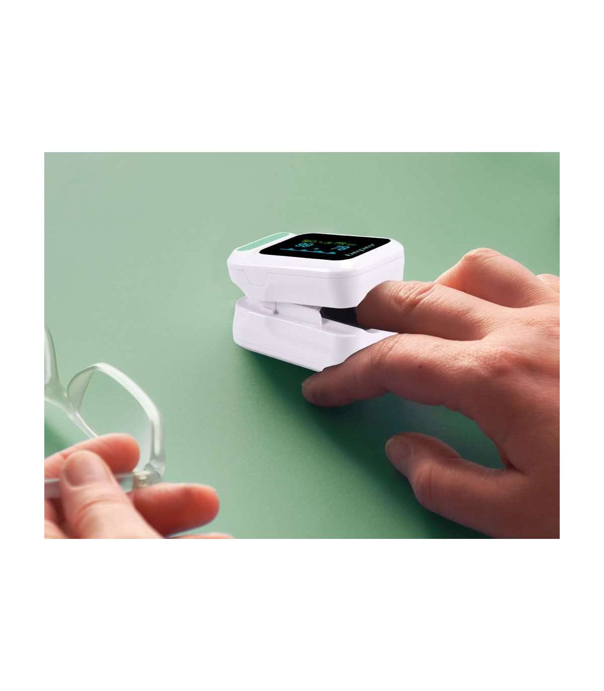 Sõrmeotsaga pulssoksümeetrit on lihtne kasutada, tänu oma automaatsele sisse- ja väljalülitusfunktsioonile on see võimeline täpselt tuvastama vere küllastumist (SpO2) ja südame löögisagedust. Lai LED -ekraan, alarmiheli, mille küllastusaste on alla 90 ja aku laetuse indikaator. Töötab patareidega (2xAAA ei kuulu komplekti).