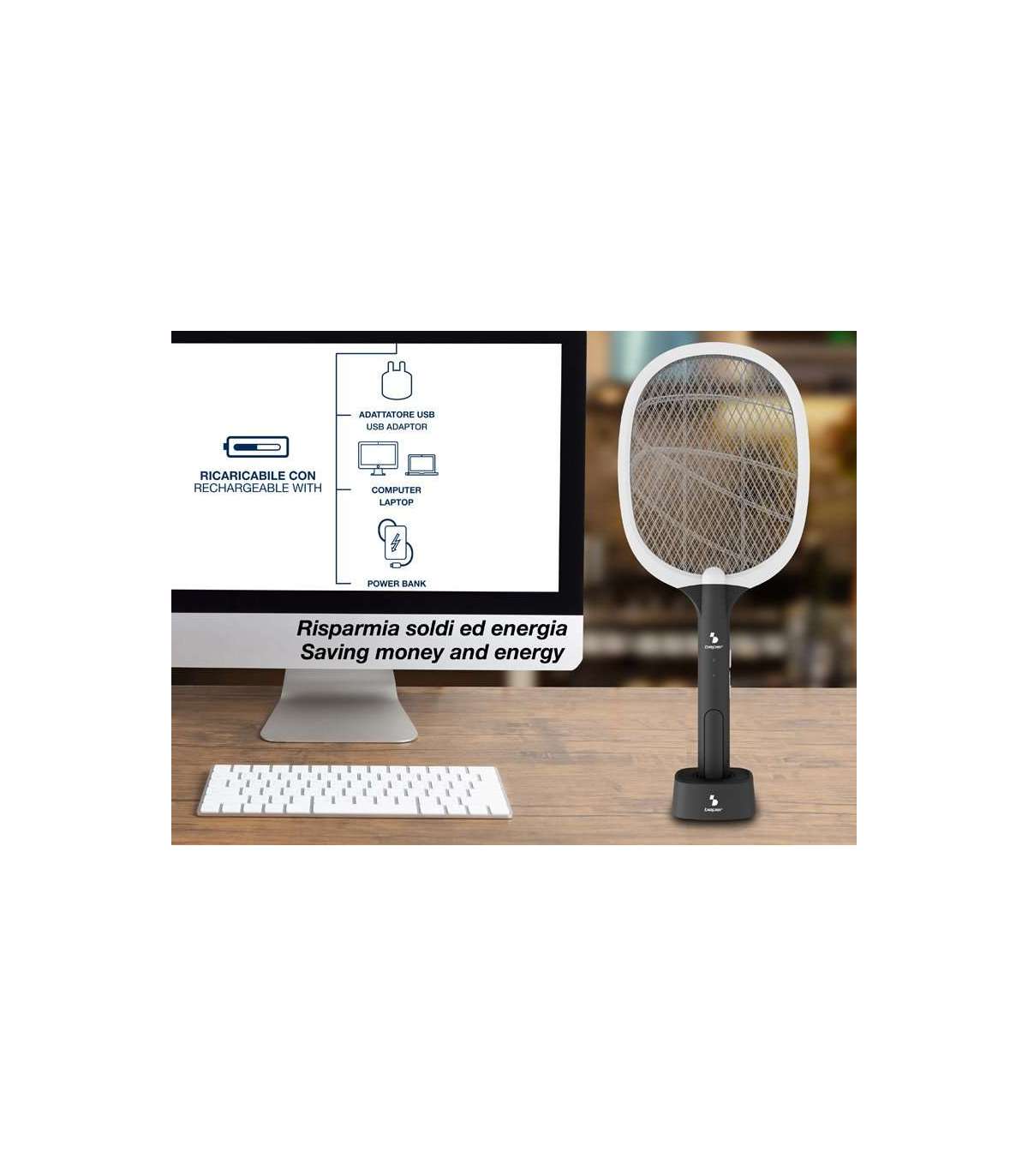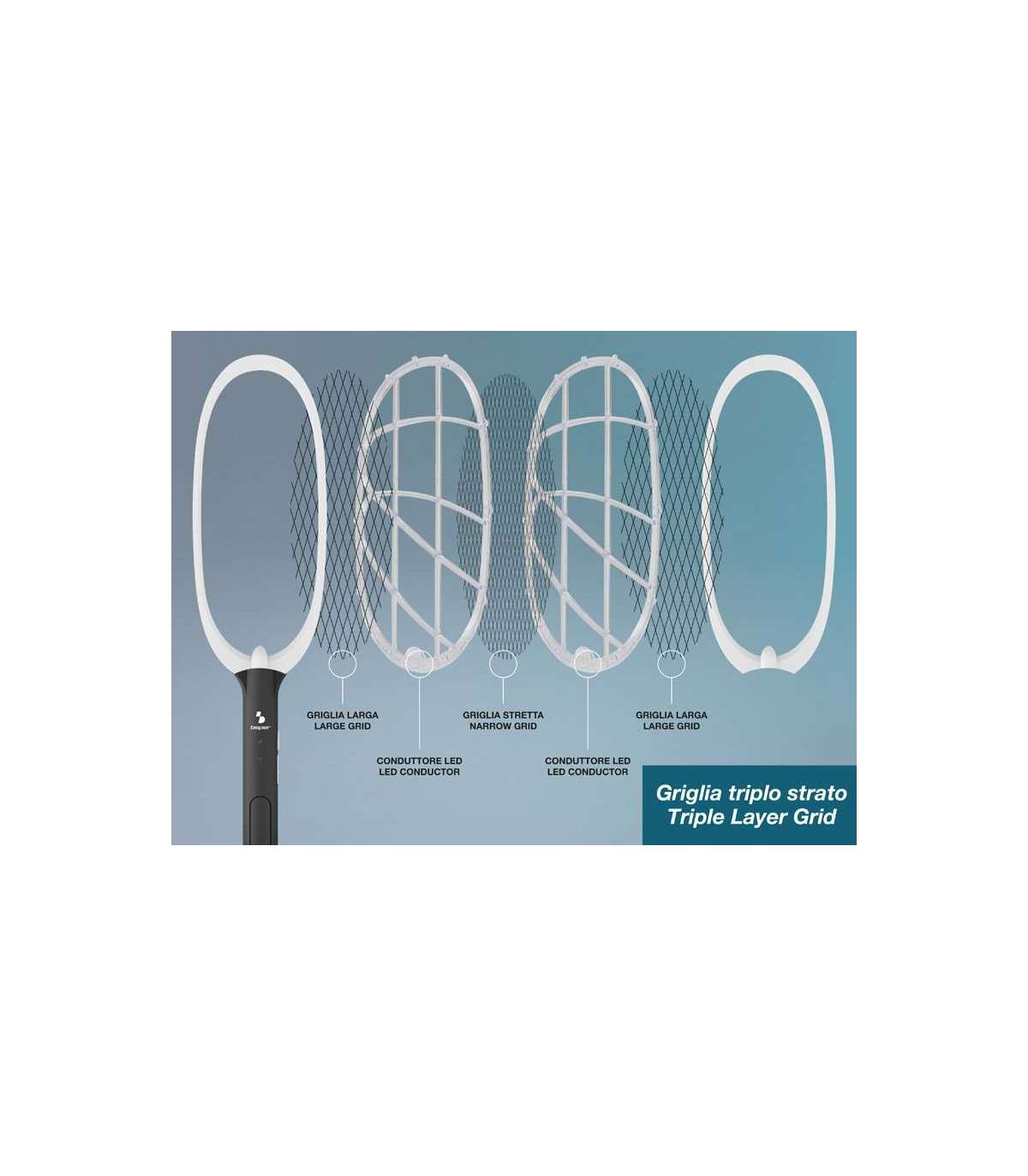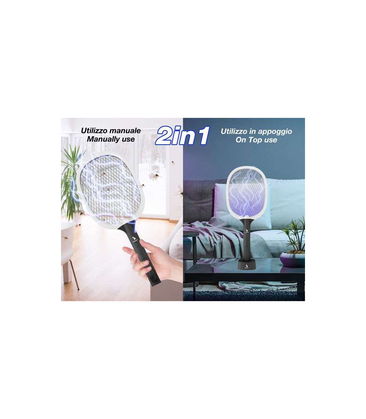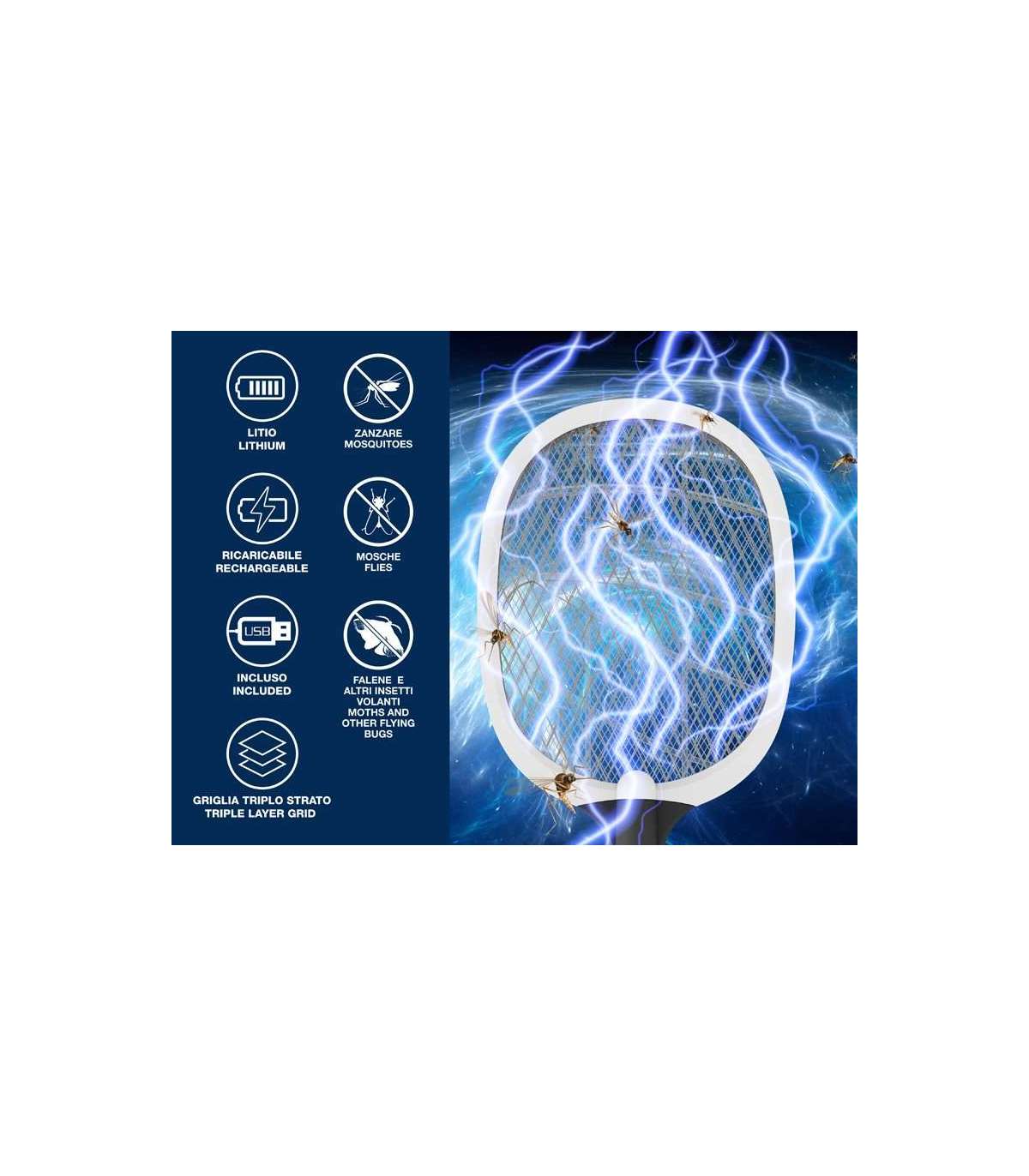 Putukapüüdja, mida saab tänu praktilisele tugialusele kasutada kas käsitsi või püsti seistes. Kõrgepingevõrk on kaitstud topelttraatvõrguga, et tagada maksimaalne kaitse kasutamise ajal. Kaasas kauakestev liitiumaku, USB-kaabli kaudu laetav.