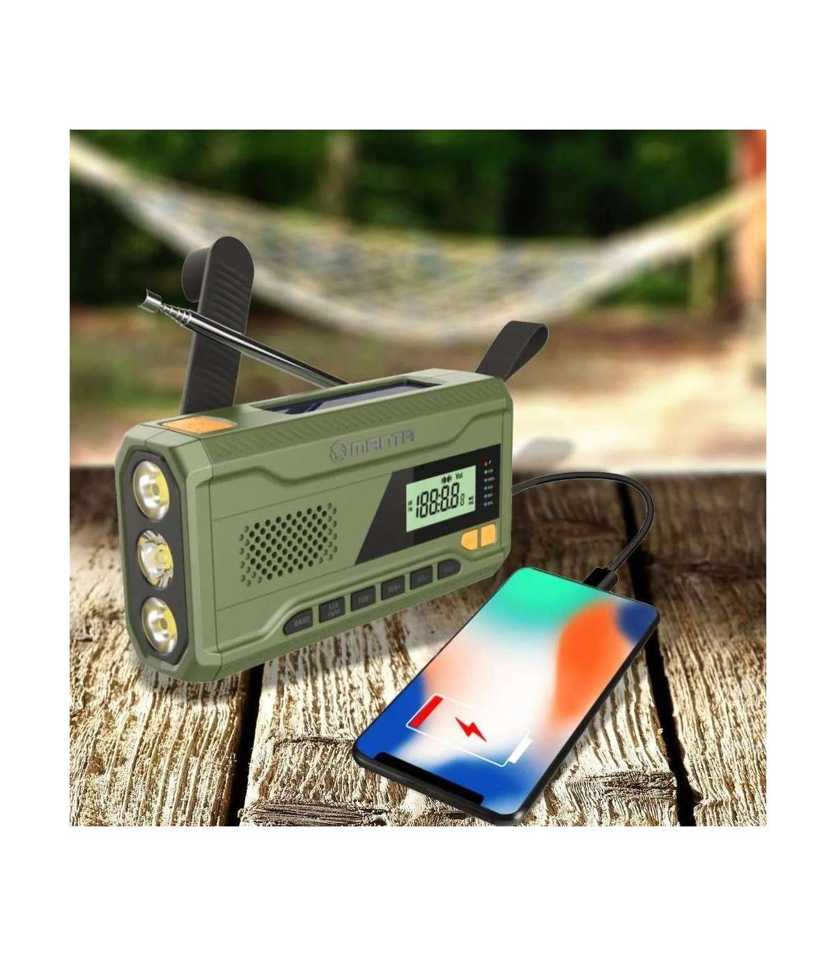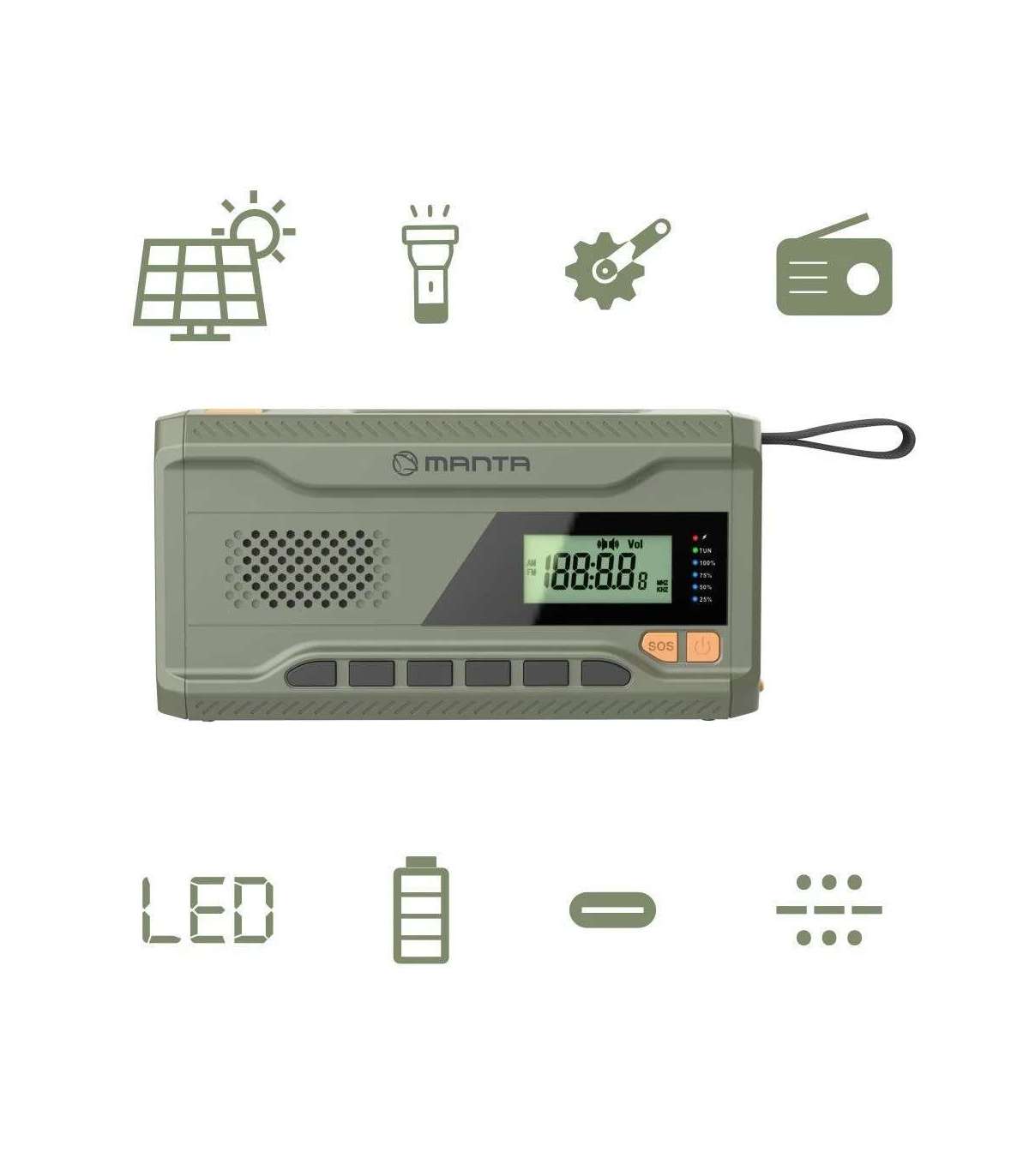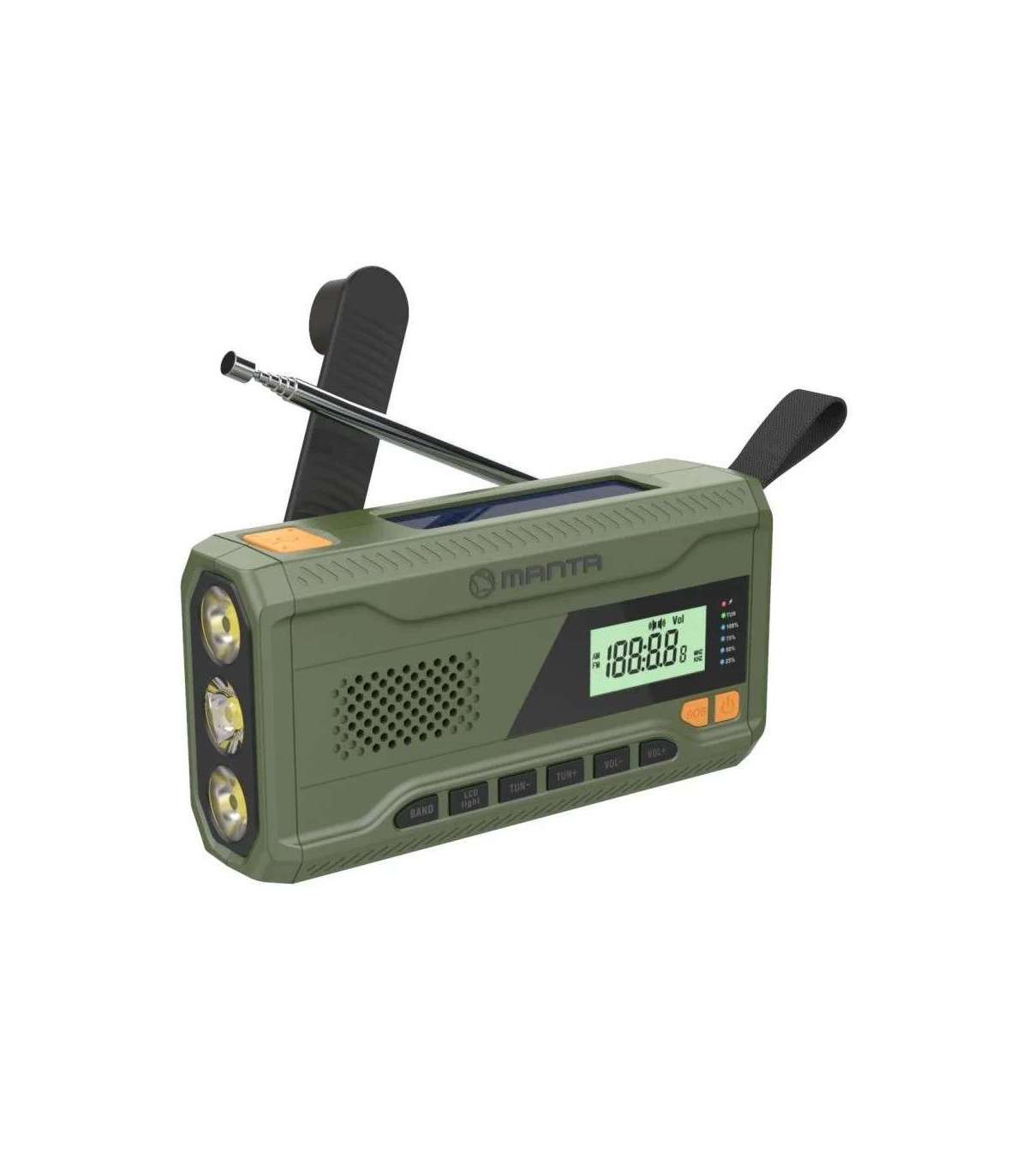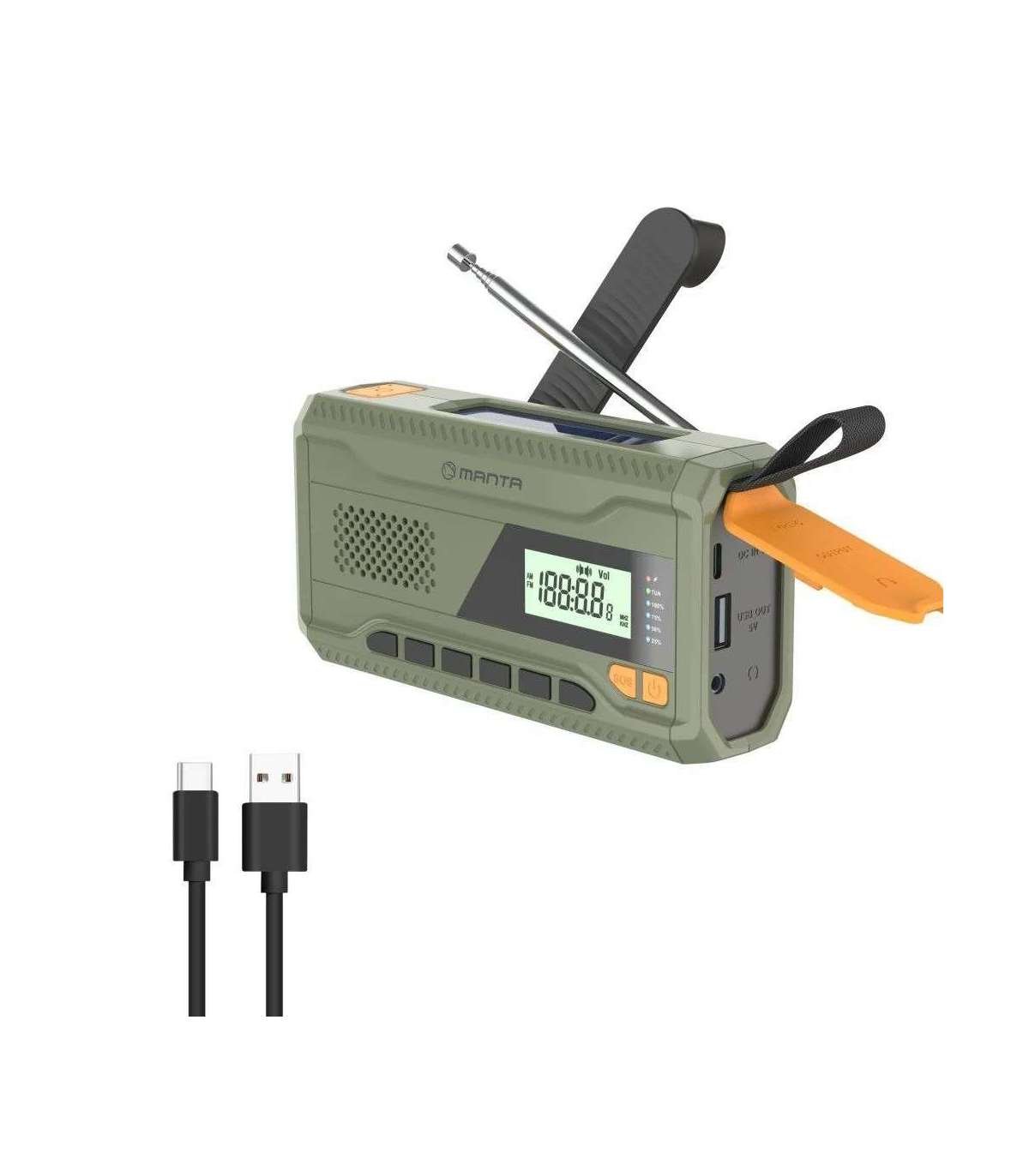 Manta kaasaskantav päikesepaneeliga FM-raadio võimaldab kuulata oma lemmikmuusikat ja raadiosaateid olenemata asukohast.