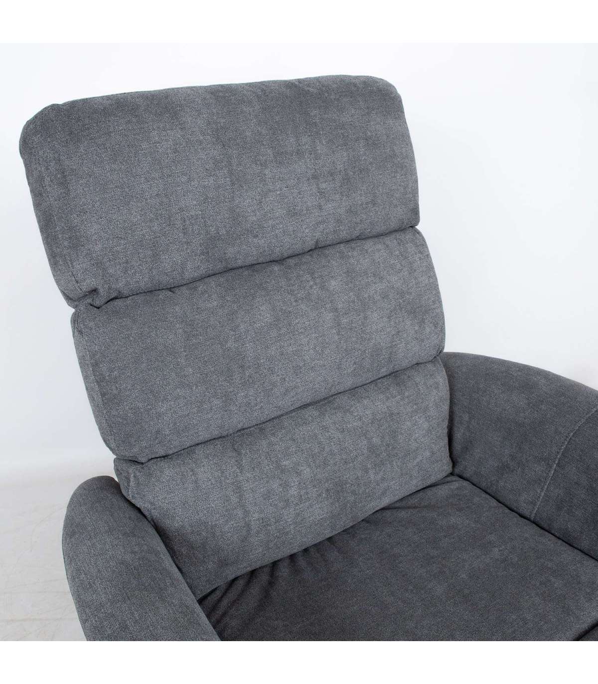 Tugitool BARCLAY manuaalsne recliner 79x86xH105cm, hall. Recliner tüüpi tugitooli jalatoe asendit on võimalik muuta manuaalse mehhanismi abil. Jalatoe tõstmiseks tõmmake tooli paremal välisküljel asuv kang üles. Surudes jalatuge alla fikseerub see automaatselt algasendisse. Kattematerjal: 100% polüesterkangas, Martindale’i väärtus vahemikus 10 000-15 000. Karkass: puit, metall. Polsterdus: polüuretaanvaht 20-24kg/m³. Tooli üldmõõdud on 79x86xH105cm. Istme laius 52cm, istme sügavus 54cm, istme kõrgus 48cm. Seljatoe kõrgus 69cm. Käetoe kõrgus maast 63cm.