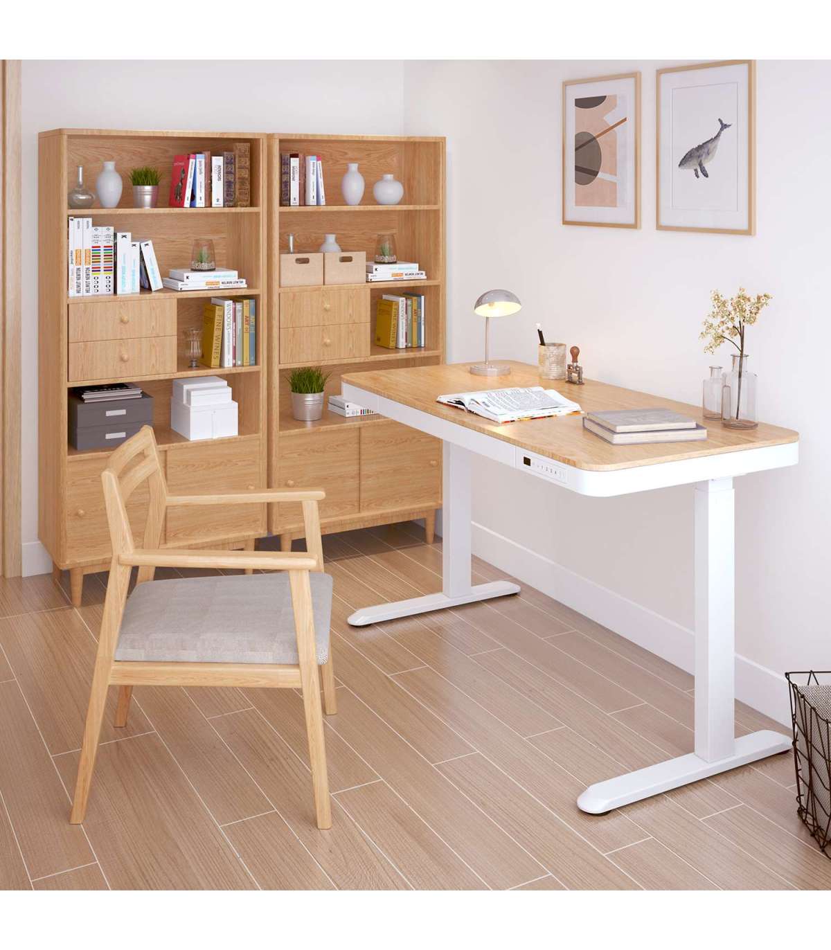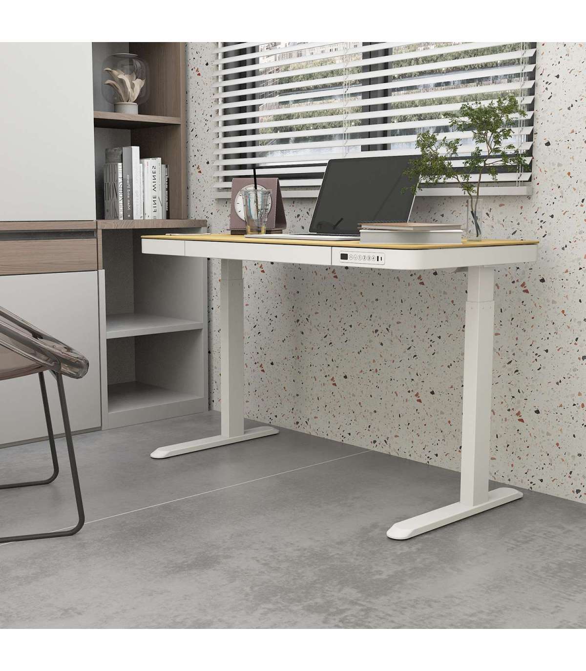 Töölaud ERGO 1-mootoriga 120x60xH72-121cm, tamm/valge