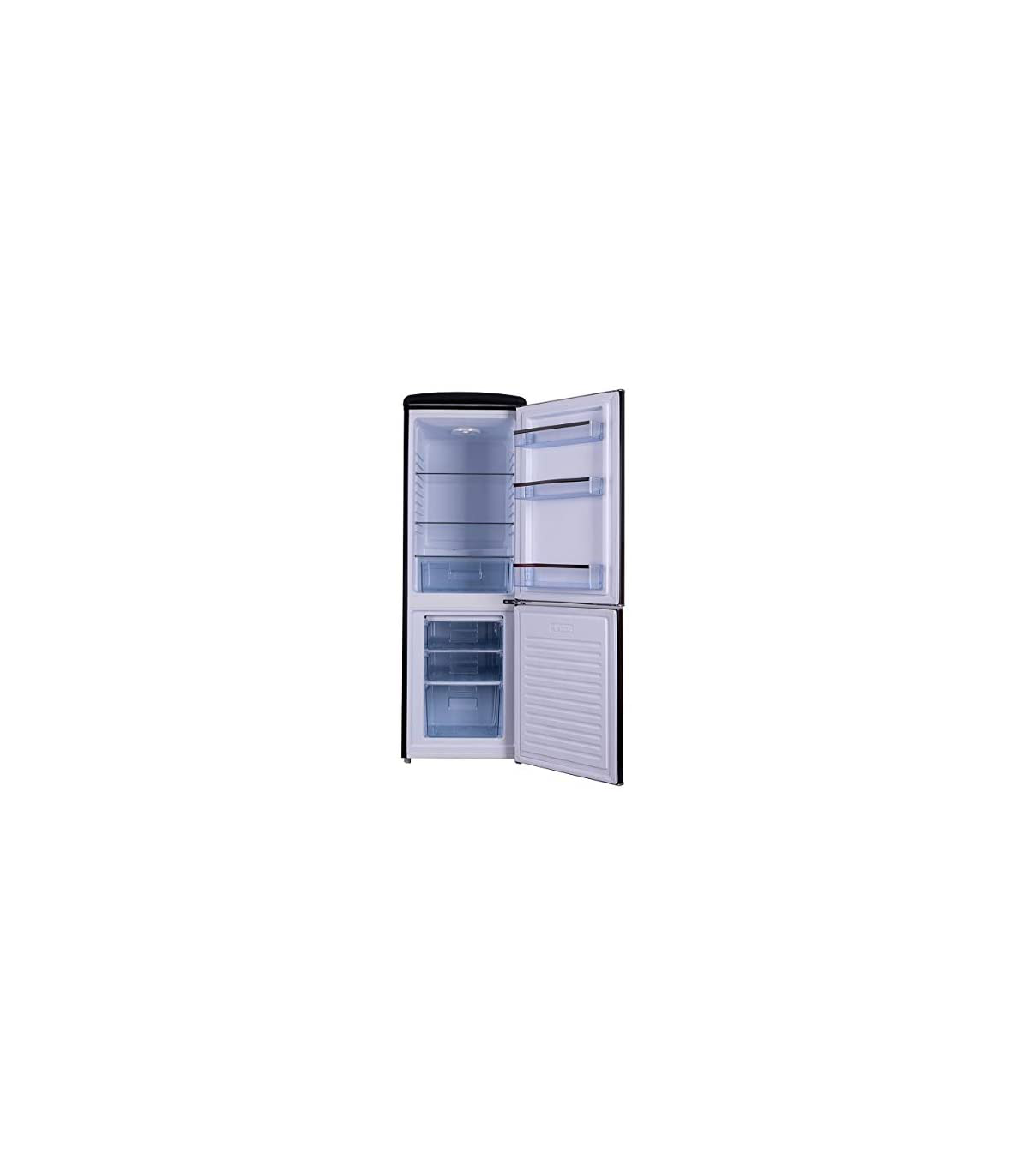 See retro stiilis külmik püüab pilke tänu oma erilisele disainile ning kroomist detailidele. Ukse peal olev Frigelux logo on spetsiaalselt loodud vintage stiilis kirjatüübiga täiustades külmiku retro ilmet.