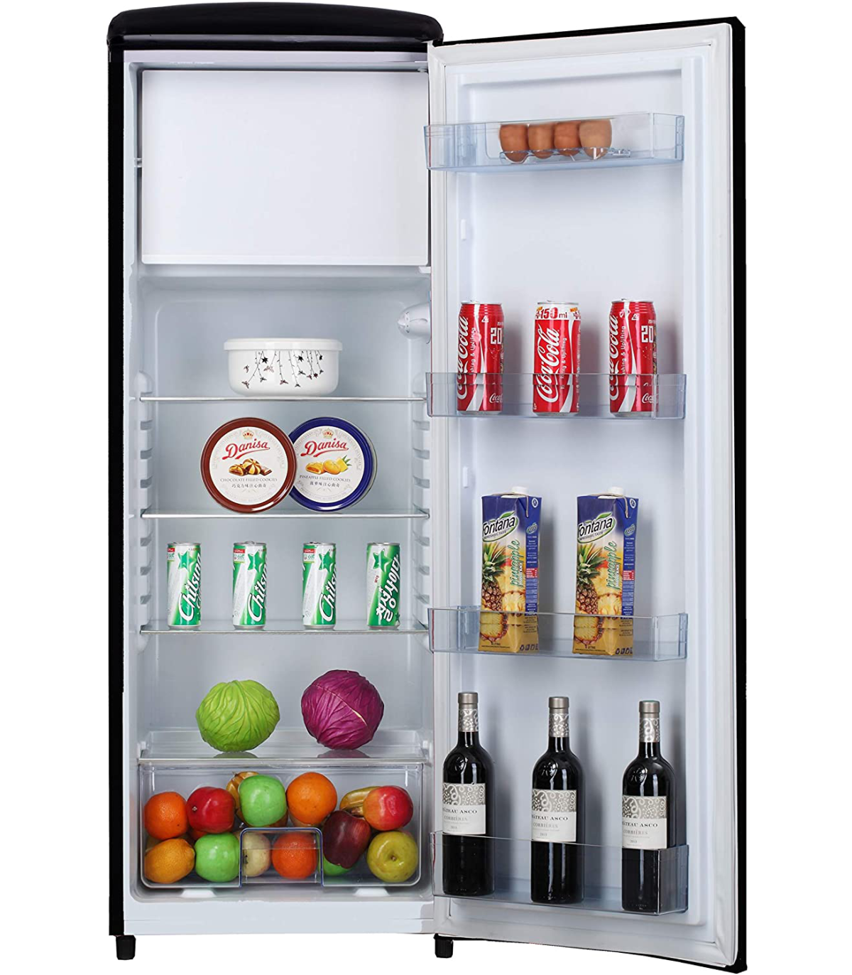 See retro stiilis külmik püüab pilke tänu oma erilisele disainile ning kroomist detailidele. Ukse peal olev Frigelux logo on spetsiaalselt loodud vintage stiilis kirjatüübiga täiustades külmiku retro ilmet.