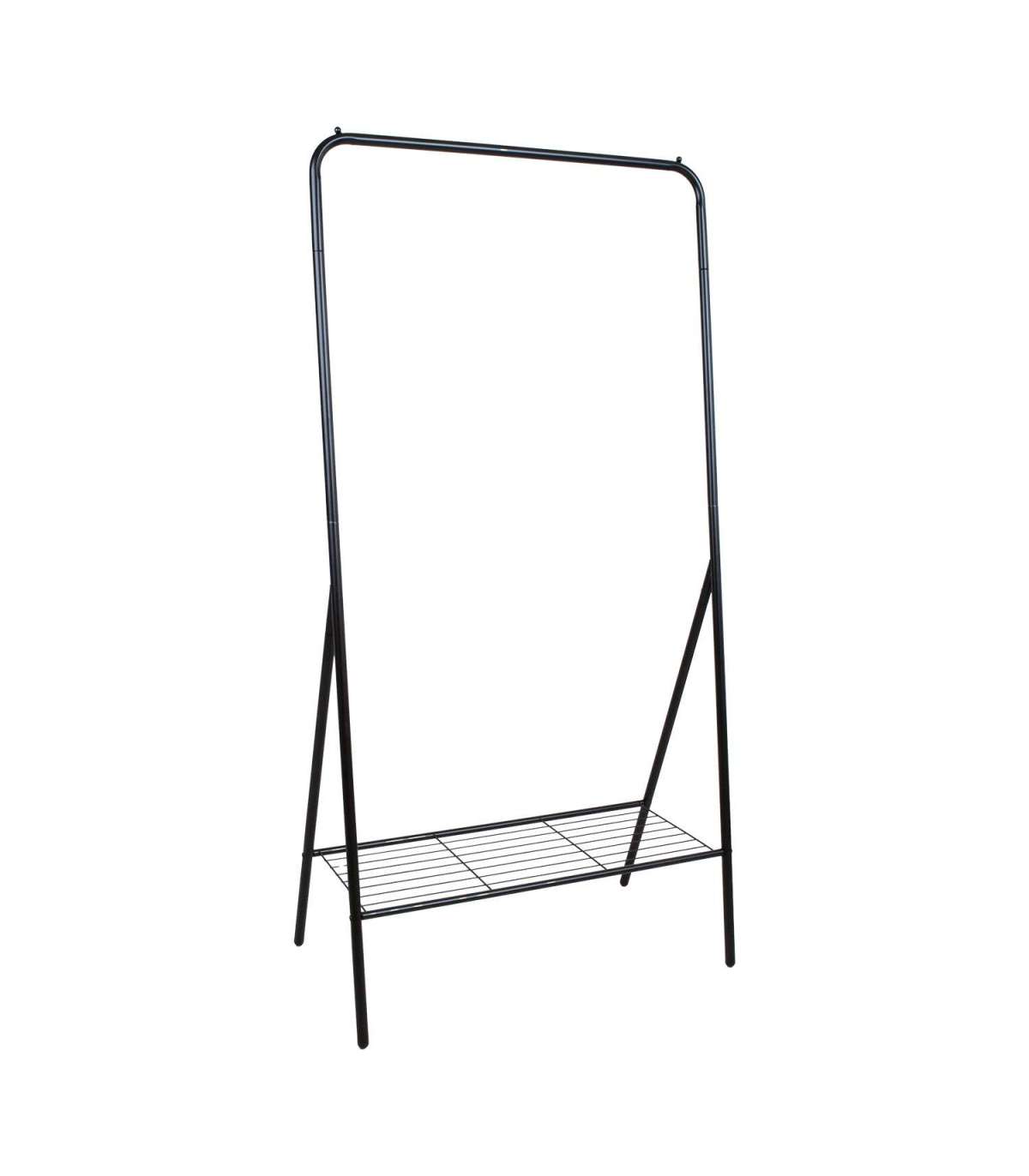 Stange FERGAL 85x48xH169cm, must. Stange on valmistatud terastorust ja viimistletud musta pulbervärviga. Riiul on valmistatud terastraadist.