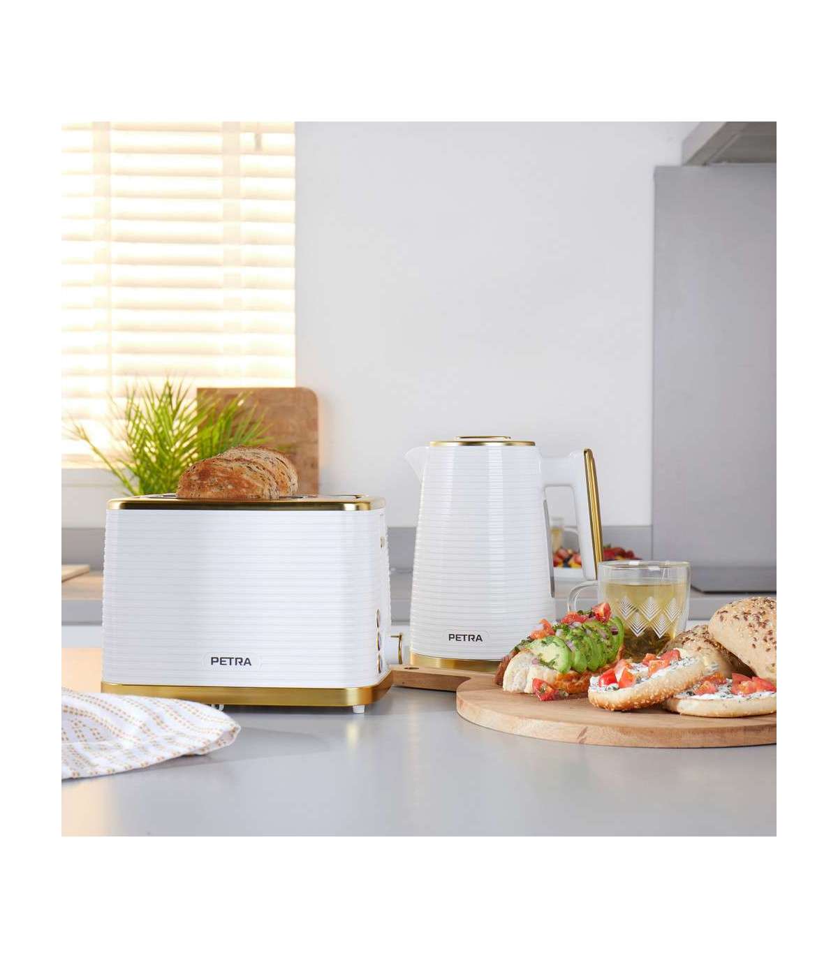 Elegantne disain: klanitud valge värv kuldsete aktsentidega.