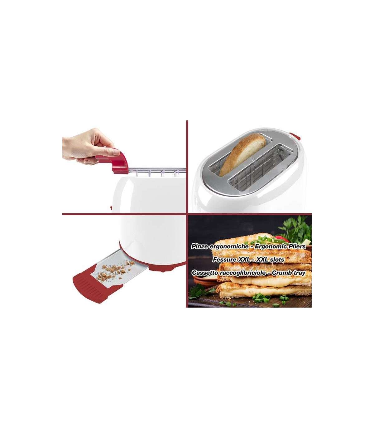 Kahe viiluga röster ABS korpuse ja ergonoomilise käepidemega roostevabast terasest tangidega täidetud röstsaiade valmistamiseks. Suured pilud kuni 3,5 cm paksused viilud. 7 röstimisastet koos automaatse väljalülitusega küpsetamise lõpus. Stopp-nupp röstimise mis tahes ajal lõpetamiseks. Purualus ja juhtmekerija.