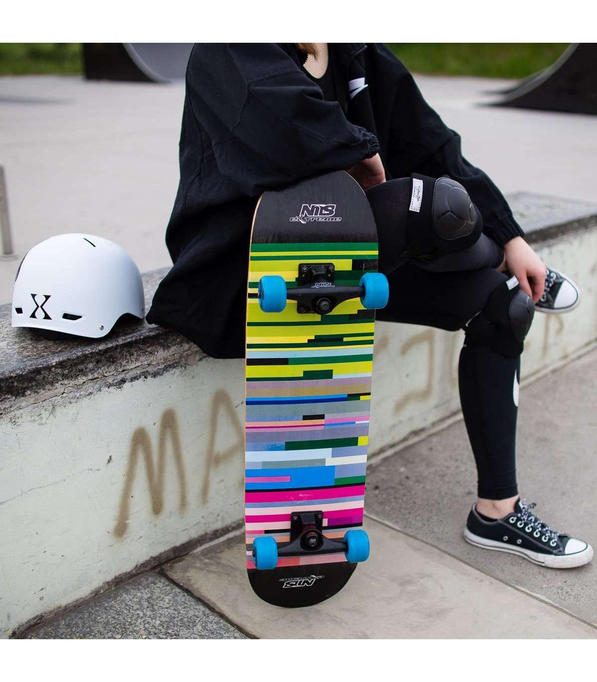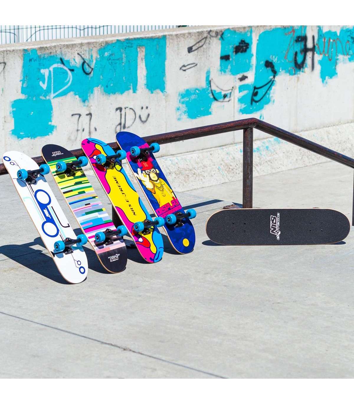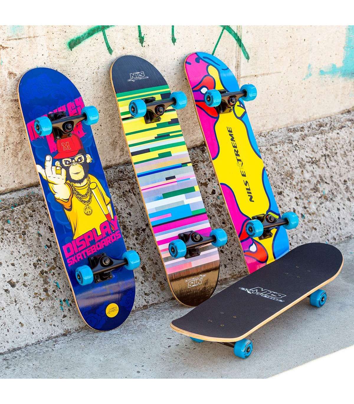 CR3108SA ERROR Nils Extreme skateboard is designed for recreational skating on paved surfaces. Hard wheels help to gain high speed and provide good traction. ABEC-7 bearings guarantee fast and reliable ride. 9 ply laminated plywood used in this model, ensures high skateboard’s strength and unfailing performance.Specification:Dimensions: 78×20 cmDeck:9 ply laminated plywoodprofiled on both sidesvery durablepolishedBearings: ABEC-7Truck: strengthened, aluminum truck and baseplateRubbers: hardness – 98AWheels: PU BLUE 54×36 mmGrip tape: black, anti slipWeight: 2,17 kgMaximum user weight: 100kgRemarks:Not for commercial use24 months warrantyImporter: Abisal Ltd. | Poland | 41-807 Zabrze | Pyskowicka Street 17 | e-mail: abisal@abisal.plAbisal Ltd.. declares that the products sold by the company are safe and meet the requirements contained in the Act on General Product Safety of December 12, 2003. (Journal of Laws of December 31, 2003)