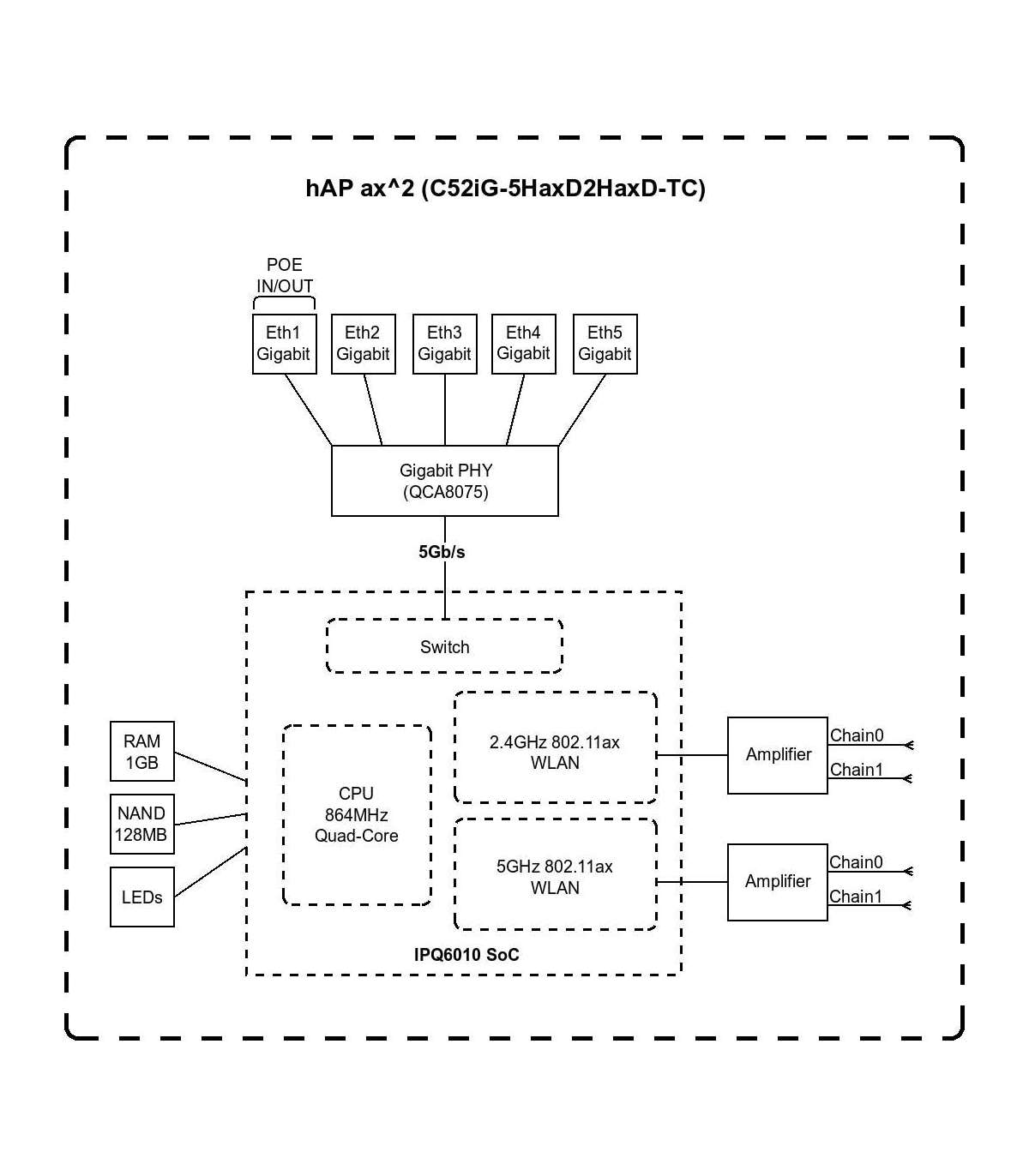 - 2.4 GHz 802.11ax dual-chain, 5 GHz 802.11 802.11ax dual-chain