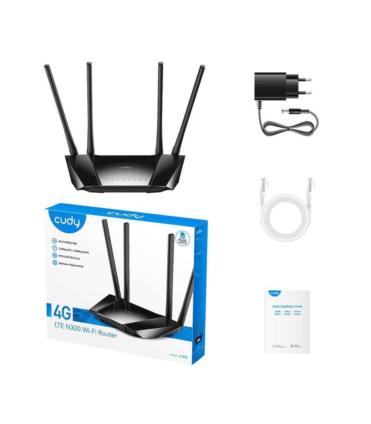Wireless router CUDY LT400 EU Wi-Fi 300 Mbps 2.4 GHz 4G LTE SIM Black