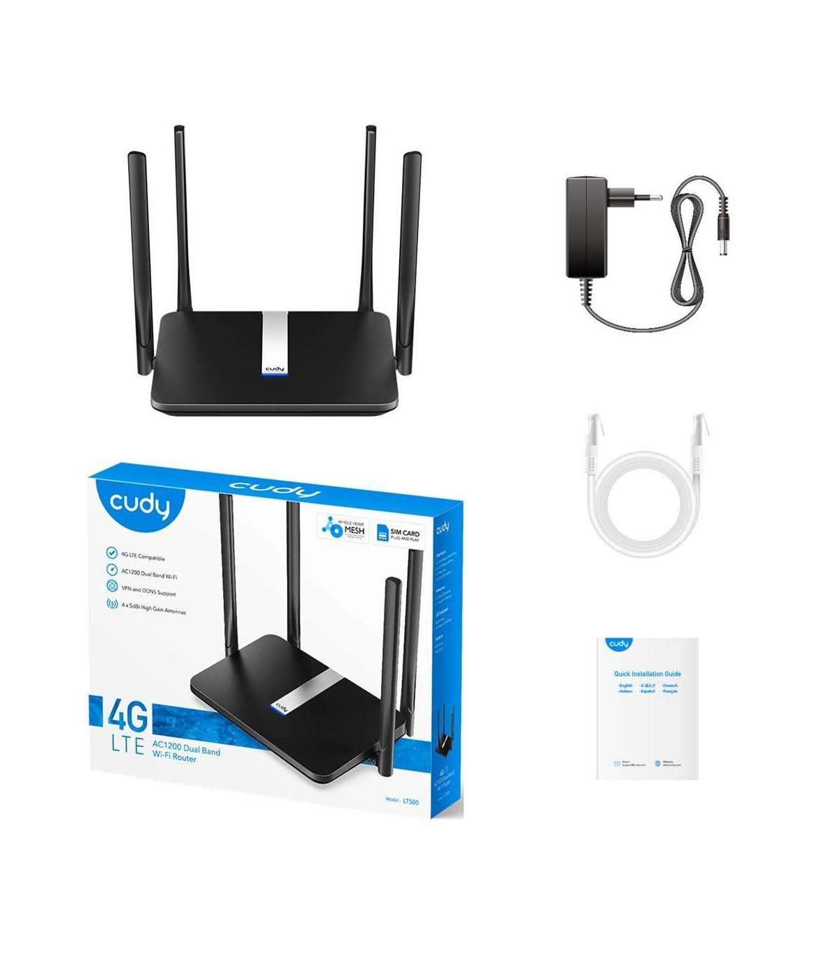 Cudy LT500 wireless router Fast Ethernet Dual-band (2.4 GHz / 5 GHz) 4G Black