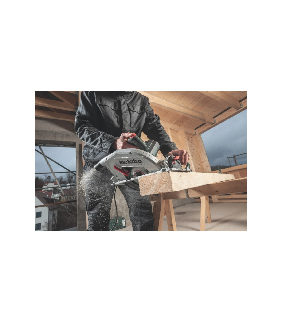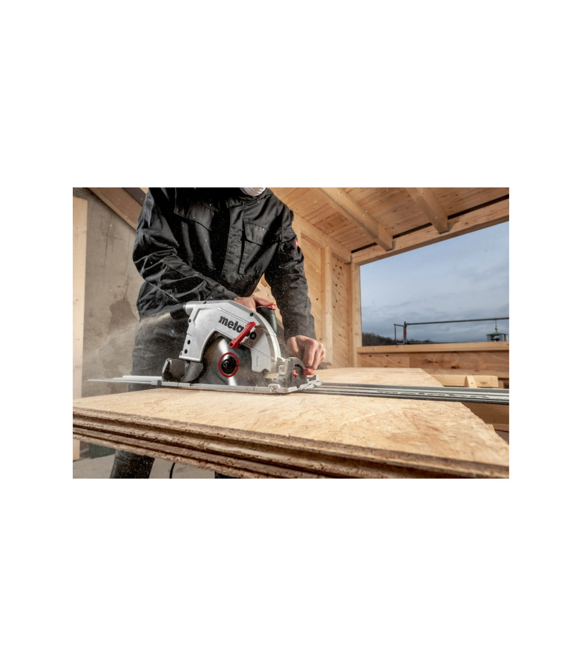 Täpsete lõigete tagamiseks võimalik kasutada Metabo ning teiste tootjate enamlevinud juhtsiine Tehnilised andmed: Nominaalne sisendvõimsus 2000 W Väljundvõimsus 1100 W Maksimaalne lõikesügavus 90° juures 85 mm Maksimaalne lõikesügavus 45° juures 65 mm Reguleeritav lõikesügavus 0 - 85 mm Saetera Ø x puurava Ø 235 x 30 mm Pöörete arv tühikäigul 4500 /min Pöörete arv nominaalkoormusel 3800 /min Maksimaalne lõikekiirus 55 m/s Kaal (ilma voolujuhtmeta) 8,4 kg Külmakindel kummikaabel 4 m Spindlilukk Täielikult suletud alumiiniumisulamist tugiplaat turvaliseks toestamiseks ja ka juhtsiini kasutamiseks. Selgelt nähtav lõikeindikaator algse lõike järgi saagimiseks Turvalukustuslüliti takistab seadme soovimatut käivitumist Saetera nurka saab tugiplaadi suhtes reguleerida, et tagada maksimaalne lõiketäpsus Määrdesüsteem tagab reduktori pika tööea Optimaalne tolmuärastus tänu pööratavale tolmuväljaviiguotsikule Komplekti kuulub: Saeketas (24 hambaga), paralleeljuhik, purueemaldus otsik, kuuskantvõti, plastikkast Juhtsiinid on saadaval lisatarvikuna! 3-aastane XXL garantiiaeg, kui registreerid seadme 4 nädala jooksul alates ostukuupäevast aadressil www.metabo.ee