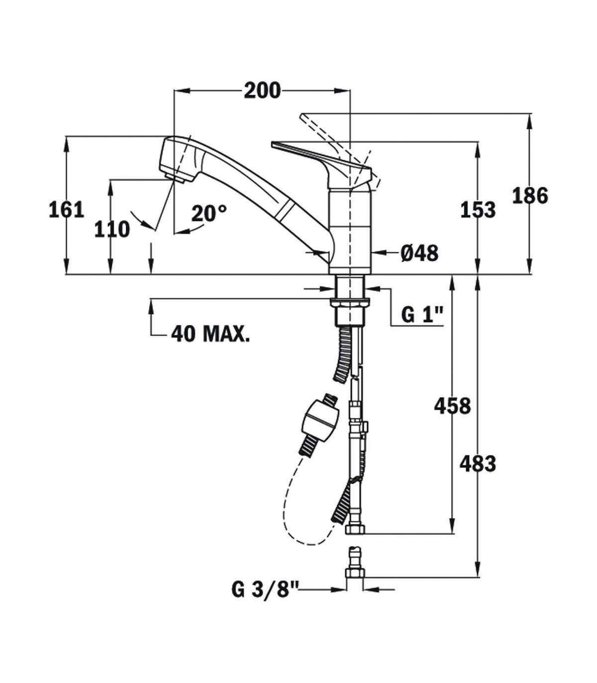 Väljatõmmatava käsidušiga köögisegisti.