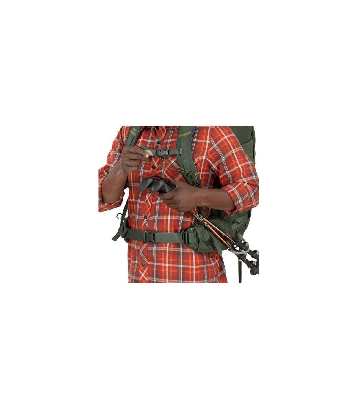 Ext. key hook and fastening loops, FlapJacket cover, water bladder compartment and suspension, 2 storage compartments, AntiGravity System, adjustable shoulder straps and chest strap, integrated whistl
