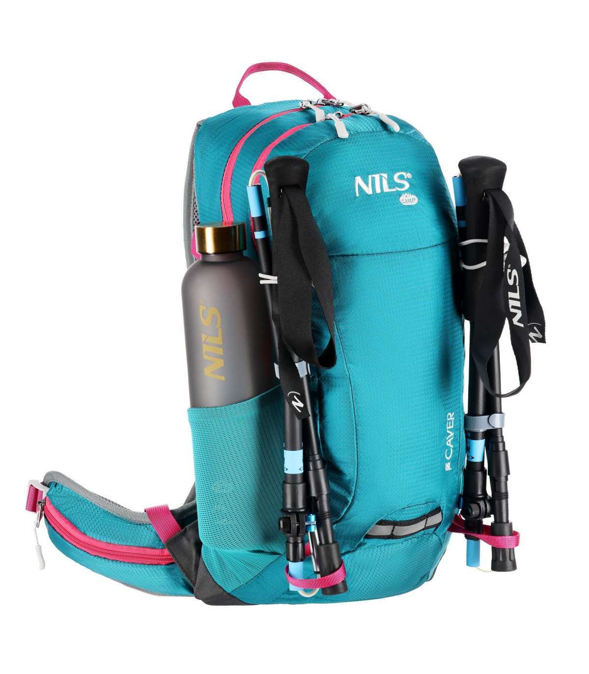NC1950 BACKPACK TOURIST TURQUOISE CAVER 18 NILS CAMPNILS CAMP presents the NC1950 Caver, the perfect choice for those planning short day trips. Lightweight, durable and compact - made with your needs in mind.Compact capacity and practical organizationThe Caver backpack offers a capacity of 18 liters, ideal for storing essential gear for short trips. It is equipped with two main zippered compartments for efficient organization and easy access to your belongings.Advanced features for convenience and comfortThe backpack is equipped with a variety of pockets and compartments for efficient space management. It uses an advanced "Air Speed System" ventilation system that effectively insulates the main compartment from your back for continuous airflow and increased carrying comfort, especially on hot days. In addition, the backpack is equipped with a removable back panel with a removable frame, which makes it much easier to relieve pressure on the spine and allows easy removal of the panel, which is very practical for washing.