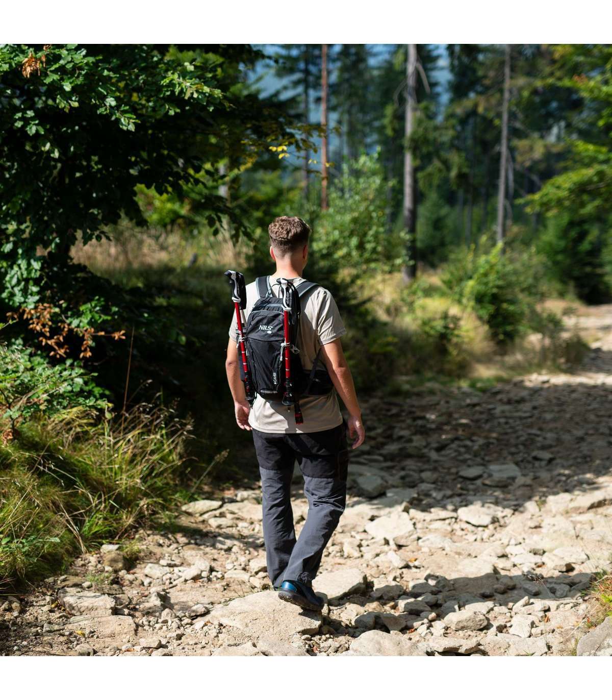 NC1950 BACKPACK TOURIST BLACK CAVER 18 NILS CAMPNILS CAMP presents the NC1950 Caver, the perfect choice for those planning short day trips. Lightweight, durable and compact - made with your needs in mind.Compact capacity and practical organizationThe Caver backpack offers a capacity of 18 liters, ideal for storing essential gear for short trips. It is equipped with two main zippered compartments for efficient organization and easy access to your belongings.Advanced features for convenience and comfortThe backpack is equipped with a variety of pockets and compartments for efficient space management. It uses an advanced "Air Speed System" ventilation system that effectively insulates the main compartment from your back for continuous airflow and increased carrying comfort, especially on hot days. In addition, the backpack is equipped with a removable back panel with a removable frame, which makes it much easier to relieve pressure on the spine and allows easy removal of the panel, which is very practical for washing.