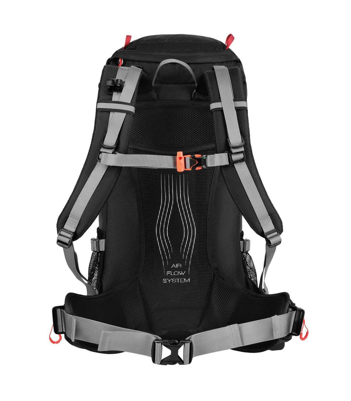 Päästevile on integreeritud rinna rihma pandlasse, et parandada kasutaja ohutust. Lisapaelad võimaldavad kinnitada näiteks matkakeppe või muid tarvikuid. Seljakotil on ka kaks võrgust küljetaskut ja lukuga tasku puusarihma peal, mis sobib ideaalselt telefonile või teistele väiksematele esemetele.