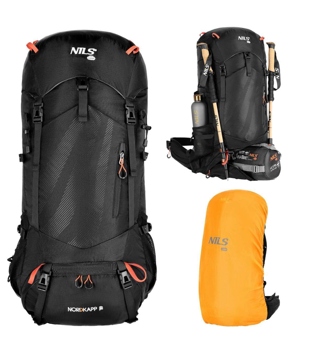 NC1992 MATKASELJAKOTT MUST NORDKAPP 65L NILS CAMP