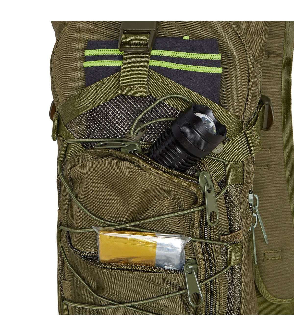 NC1732 Crab by Nils Camp is a light, tactical backpack with a capacity of 15l, which was created for all lovers of trips to the mountains and the forest. The Crab model is made of high-quality materials and has numerous practical solutions that will increase the comfort and quality of use. High quality Material:The backpack is made of durable oxford material and light nylon, thanks to which it is resistant to numerous abrasions and mechanical damageWaterproof:Crab is made of a material with a water resistance of 1000mm, so hiking on rainy days will not be an obstacle. Functionality Main compartment with space for a hydration bladder:The main zipped compartment has an additional compartment and special holders for mounting a hydration bladder.Pockets:In addition to the main compartment, the Crab model has five additional pockets:- Front clip pocket- Front pocket with compression straps- Two front zip pockets- Elastic band on the front of the backpack, used to attach additional equipmentAdjustable straps:The backpack is equipped with a hip and chest belt, which relieves our spine, which significantly improves the comfort of use and reduces the occurrence of back pain. In addition, the Crab model has side compression straps, thanks to which we can reduce or increase the capacity of the backpackTop handle:Webbing handle to carry the backpack in your handSpecification:Material: 800D Oxford, 210T NylonCapacity: 15lWater resistance: 1000mmDimensions:o Height: 42 cmabout Width: 21cmo Depth: 14 cmNumber of pockets on the front: 5Adjustable waist belt: 42 cm - 90 cmAdjustable chest strap: 12 cm - 30 cmProduct weight: 600gRemarks:Not intended for commercial useGuarantee 24 monthsImporter: Abisal Ltd. | Poland | 41-807 Zabrze | Pyskowicka Street 17 | e-mail: abisal@abisal.plAbisal Ltd.. declares that the products sold by the company are safe and meet the requirements contained in the Act on General Product Safety of December 12, 2003. (Journal of Laws of December 31, 2003)