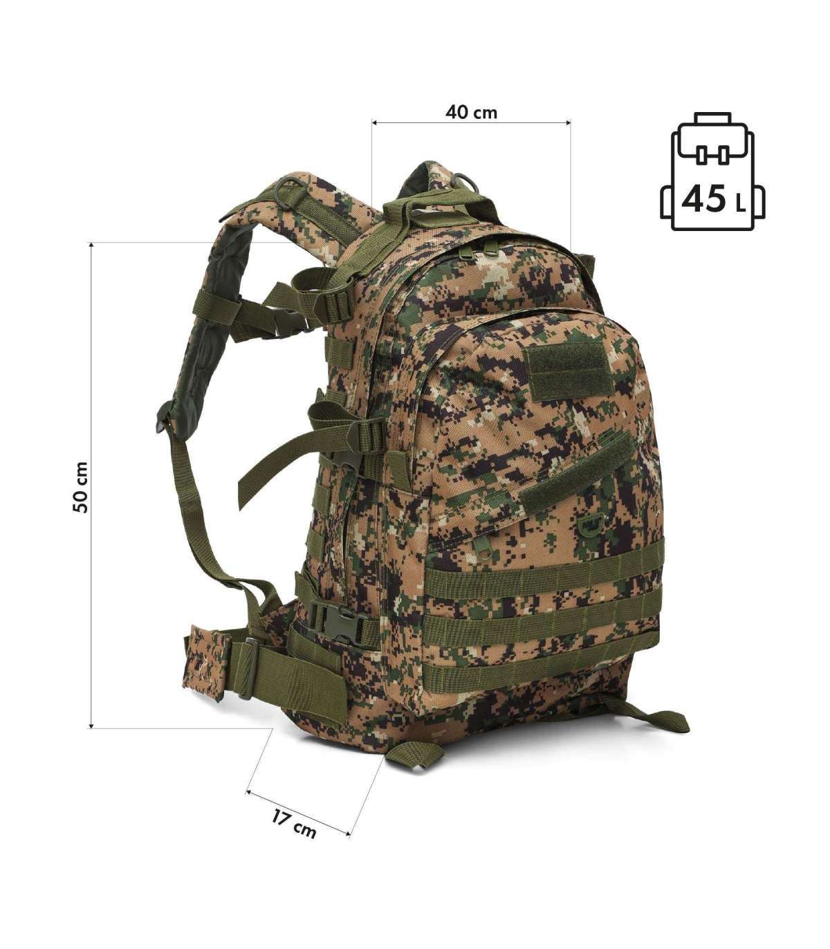 NC3904 Vanguard on 45-liitrine sõjaväeline seljakott, mis on mõeldud kasutajatele, kes hindavad funktsionaalsust, kergust ja kaasaegset taktikalist välimust. Sobib ideaalselt päevareisideks, ellujäämisseiklusteks ning linnaseljakotiks või EDC-ks (Everyday Carry) — seljakott igapäevaste esemete jaoks, mida soovite alati kaasas kanda. Selle kompaktsed mõõtmed koos läbimõeldud disainiga muudavad selle suurepäraseks valikuks igapäevaseks kasutamiseks ja loodusesse minekuks.