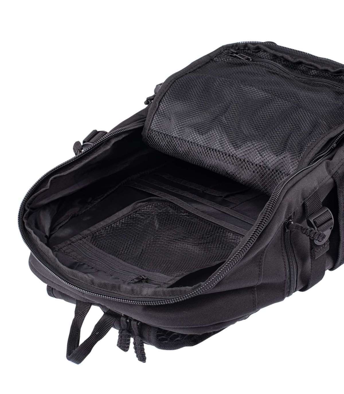 BACKPACK CAPACITY: 28 L SIZE: 31 x 50 x 18 cm WEIGHT: 1 kg MATERIAL COMPOSITION: 100% POLYESTER SPECIFICATION: CARRYING SYSTEM ORGANIZER PALS SYSTEM LAPTOP POCKET SBS ZIPPER