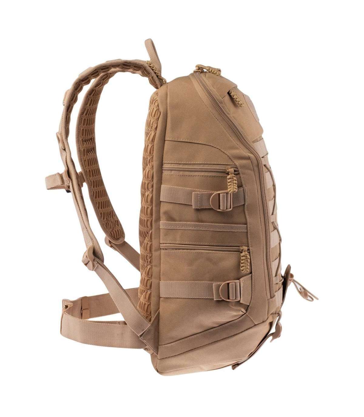 BACKPACK CAPACITY: 28 L SIZE: 31 x 50 x 18 cm WEIGHT: 1 kg MATERIAL COMPOSITION: 100% POLYESTER SPECIFICATION: CARRYING SYSTEM ORGANIZER PALS SYSTEM LAPTOP POCKET SBS ZIPPER