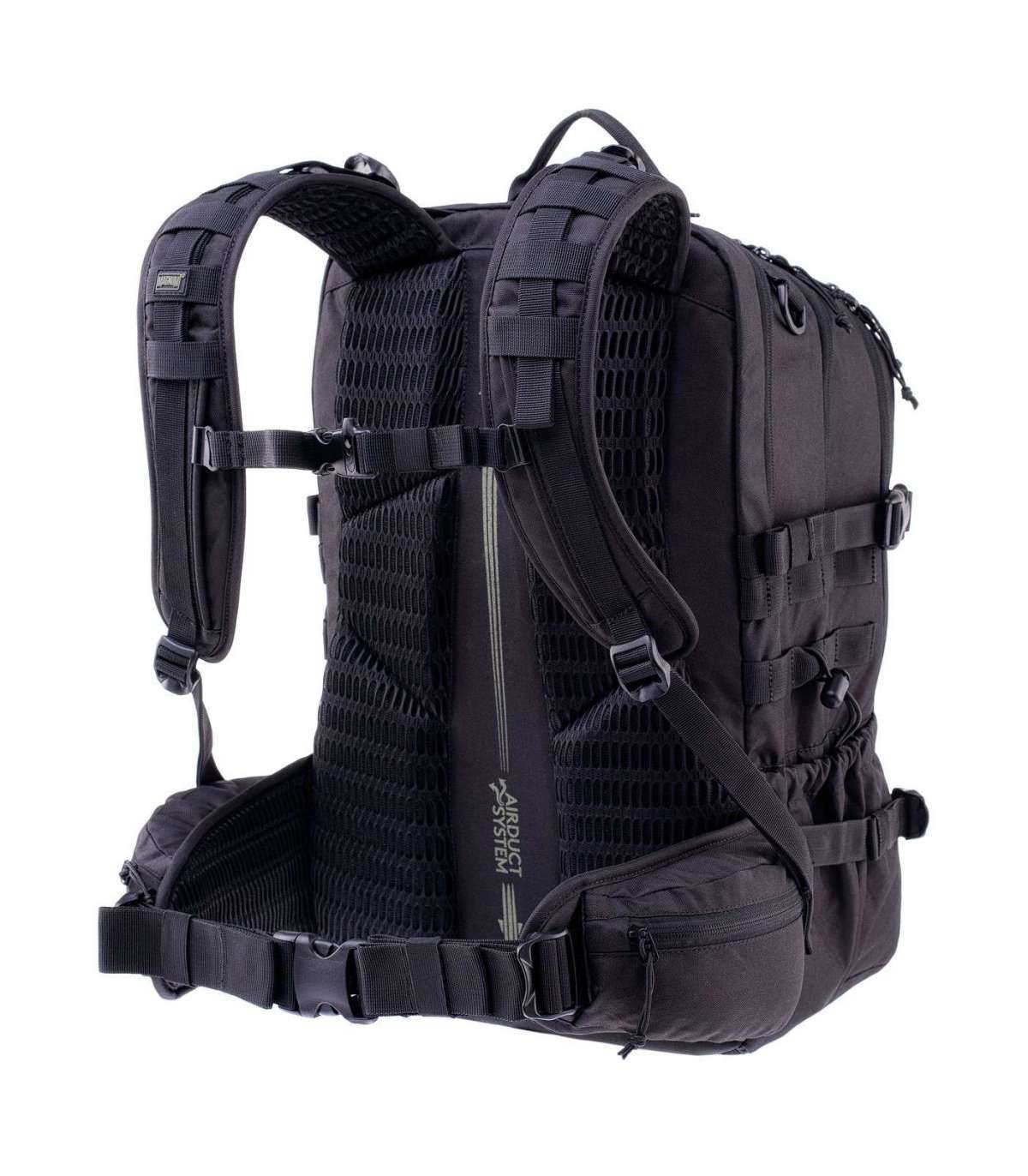 BACKPACK CAPACITY: 37 l SIZE: 52 x 32 x 22 cm WEIGHT: 1,42 kg MATERIAL COMPOSITION: 100% POLYESTER SPECIFICATION: CARRYING SYSTEM AIRDUCT SYSTEM ERGONOMIC BACK MOLLE SYSTEM ORGANIZER LAPTOP POCKET WHISTLE