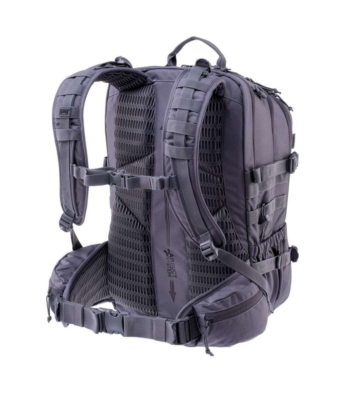BACKPACK CAPACITY: 37 l SIZE: 52 x 32 x 22 cm WEIGHT: 1,42 kg MATERIAL COMPOSITION: 100% POLYESTER SPECIFICATION: CARRYING SYSTEM AIRDUCT SYSTEM ERGONOMIC BACK MOLLE SYSTEM ORGANIZER LAPTOP POCKET WHISTLE