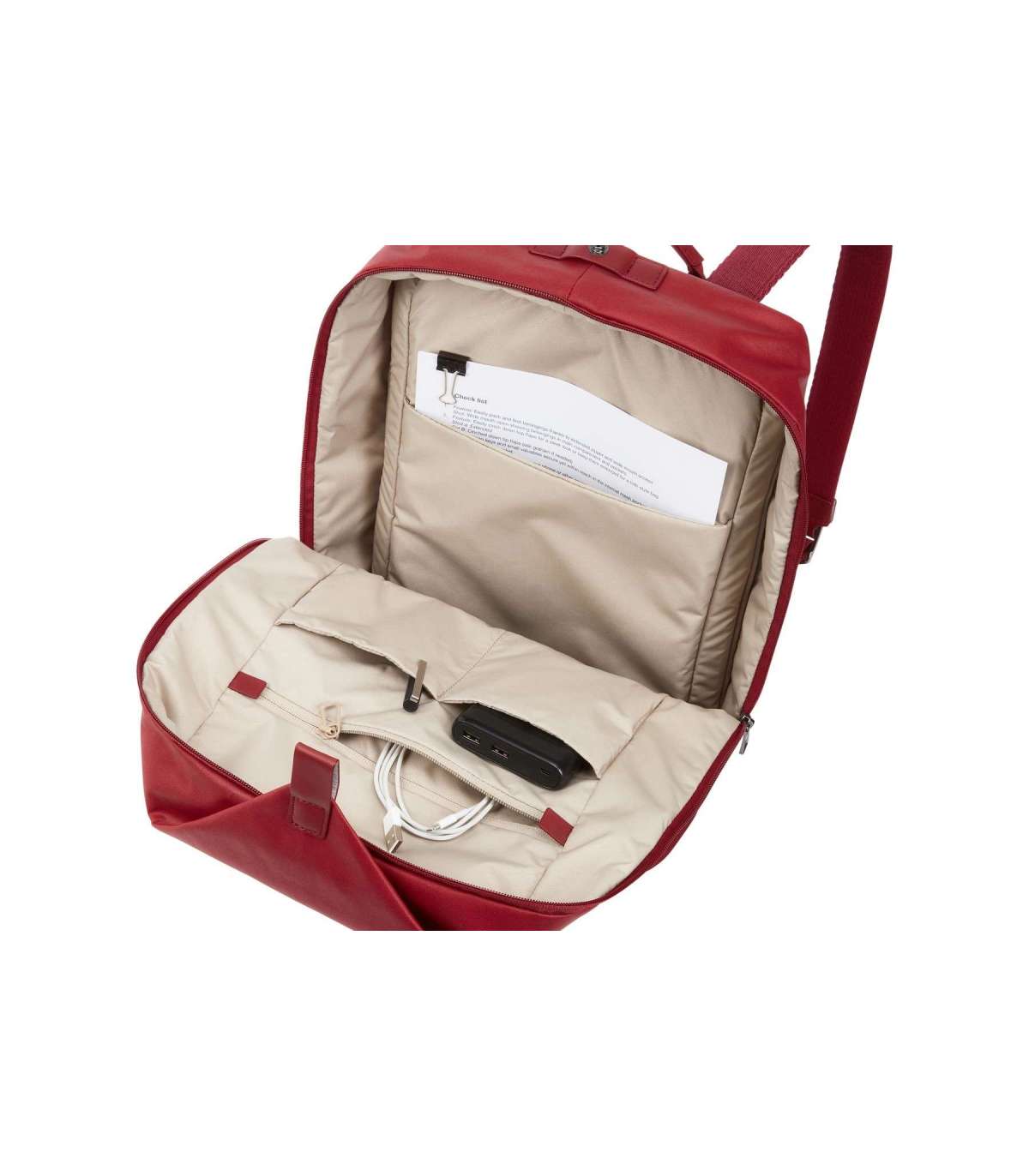 Korraldage erinevaid tarvikuid sisemiste taskute, lukuga sektsiooni ja struktureeritud failitaskuga