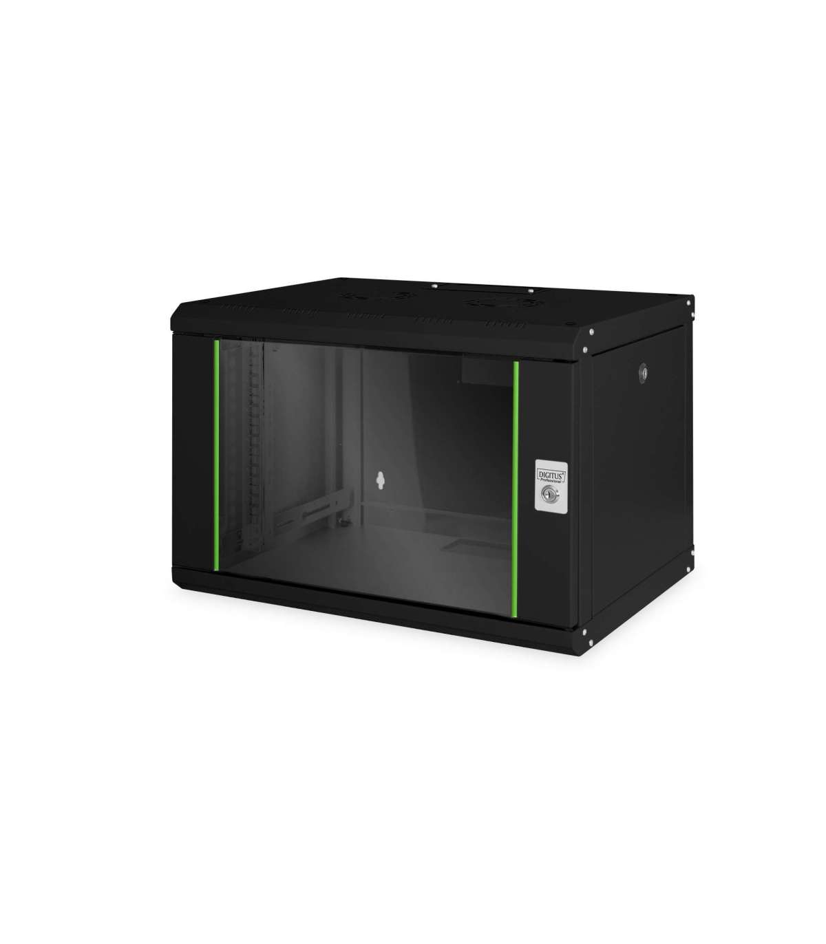 Digitus | Wall Mounting Cabinet | DN-19 07-U-SW | Black | IP protection class: IP20; Front door: Glass door, single opening; Cabinet type: Wall mounting cabinet; Equipment mounting depth min.-max.: 305-370 mm; Load capacity: 100 kg; Dimensions 420 x 600 x 450 mm,