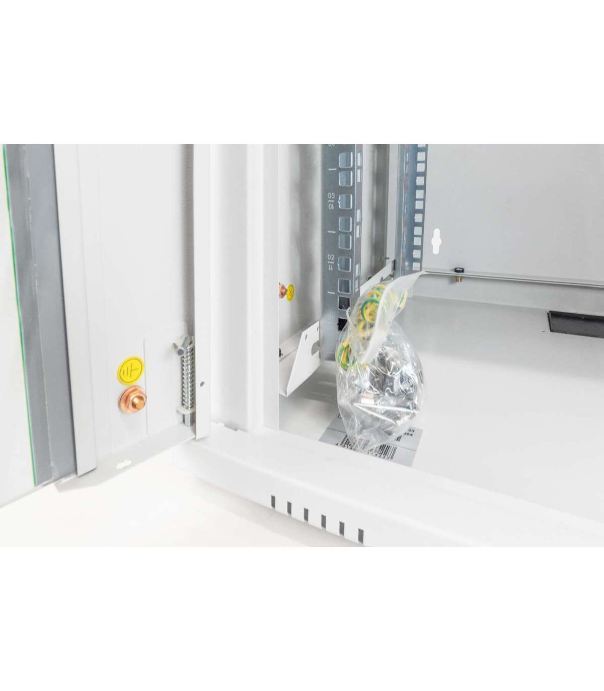 Digitus | Wall Mounting Cabinet | DN-19 09-U | Grey | IP protection class: IP20; Front door: Glass door, single opening; Cabinet type: Wall mounting cabinet; Equipment mounting depth min.-max.: 305-370 mm; Load capacity: 100 kg; Dimensions: 509 x 600 x 450 mm
