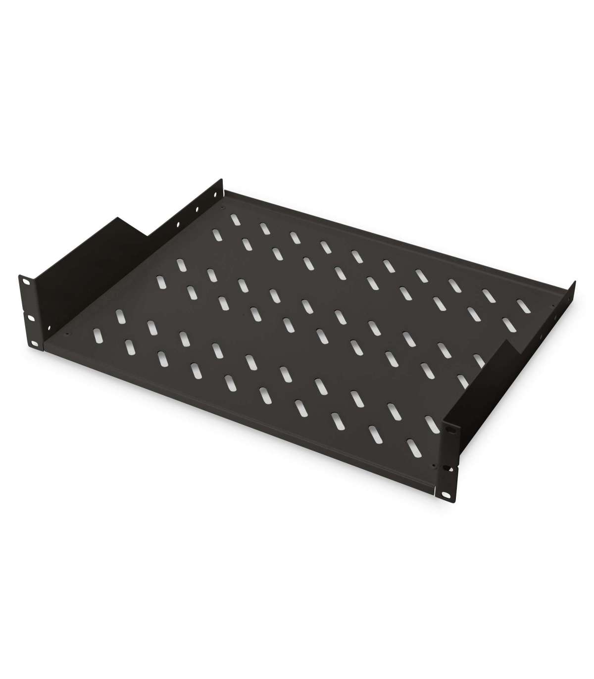 Digitus | 2U Fixed Shelf for Racks | DN-19 TRAY-2-SW | Black | Perfect for storage of components which are not 483 mm (19”) suitable. Slim design which takes space of 2 height units. Easy and quick to mount or dismount. Dimensions 88x482x349 mm, up to 25 kg