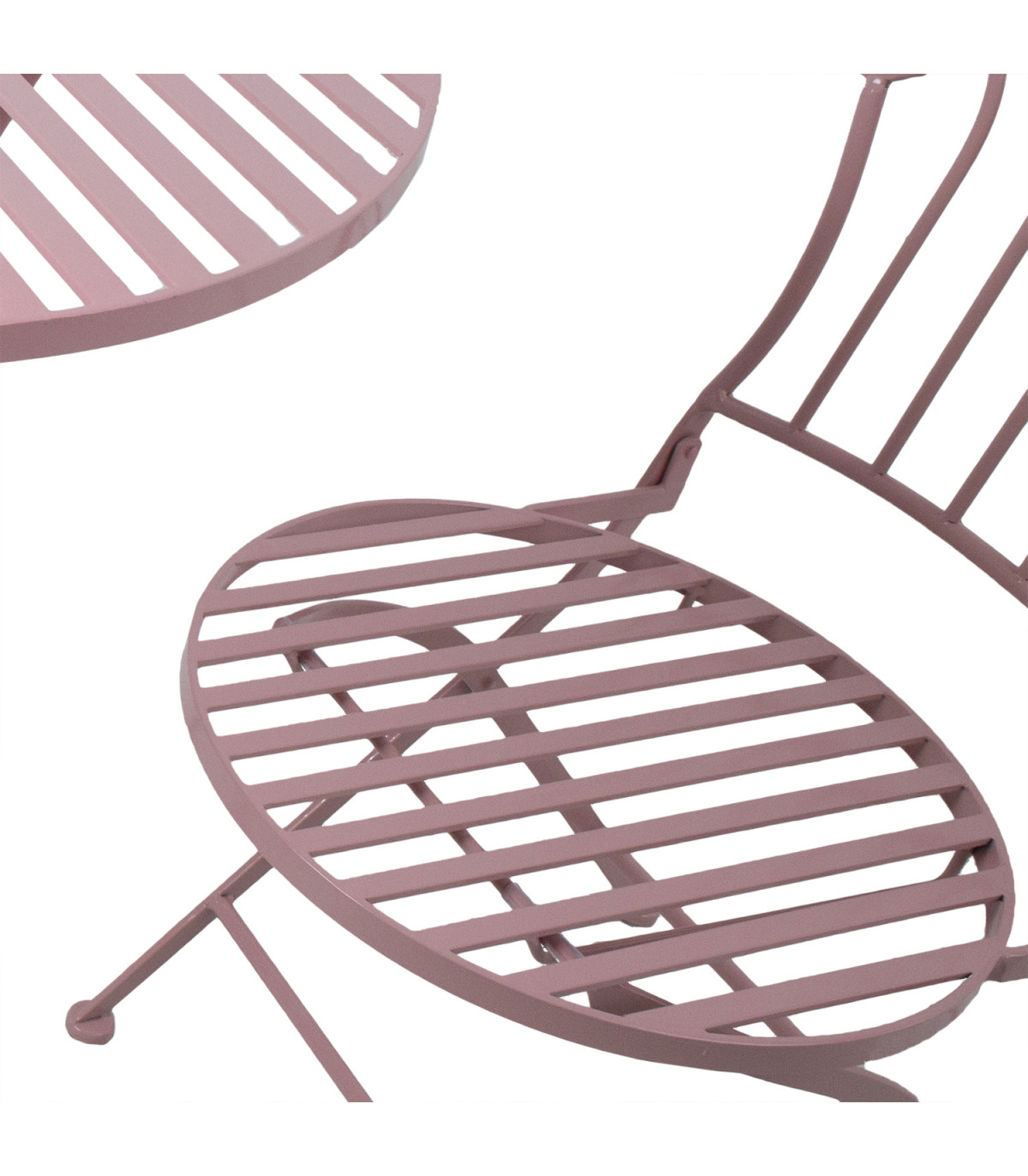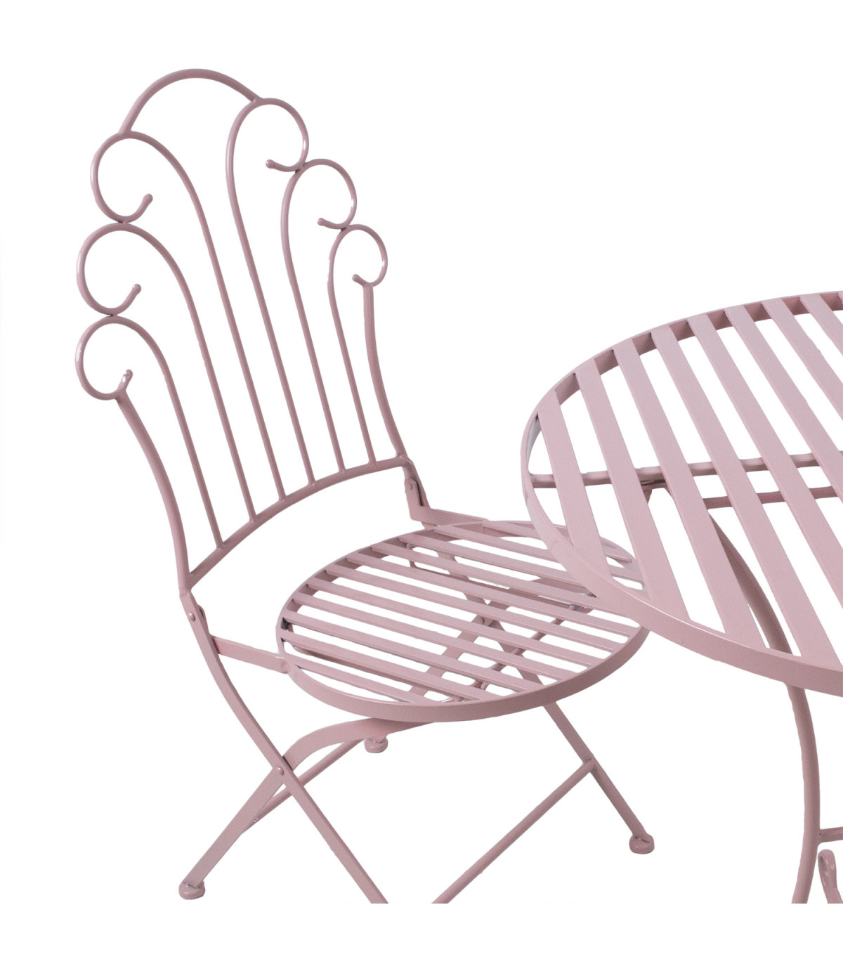 Tool ROSY kokkupandav, roosa. Sepistatud metallist mööbel on stiilne ja vastupidav! Toote viimistlemisel on kasutatud kombineerituna elektroforeeskatet ja pulbervärvi, mis tagab väga hea roostekindluse. Tooli üldmõõdud on 46x55xH95cm, istme laius 40cm, istme sügavus 40cm, istme kõrgus 43cm. Tooli mõõdud kokkupanduna on 46x105x12cm. Kaalupiirang 100kg. Kokkupanduna võtab tool vähe ruumi ning seda on lihtne hoiustada ja teisaldada. HOOLDUS JA HOIUSTAMINE: metallist mööbel on praktiliselt hooldusvaba, piisab regulaarsest puhastamisest. Suvehooaja lõppedes soovitame aiamööblit hoiustada siseruumides. Puhastage ja kuivatage mööbel enne hoiule panekut. Kasutage hoiustamiseks kuiva ning hea ventilatsiooniga ruumi.