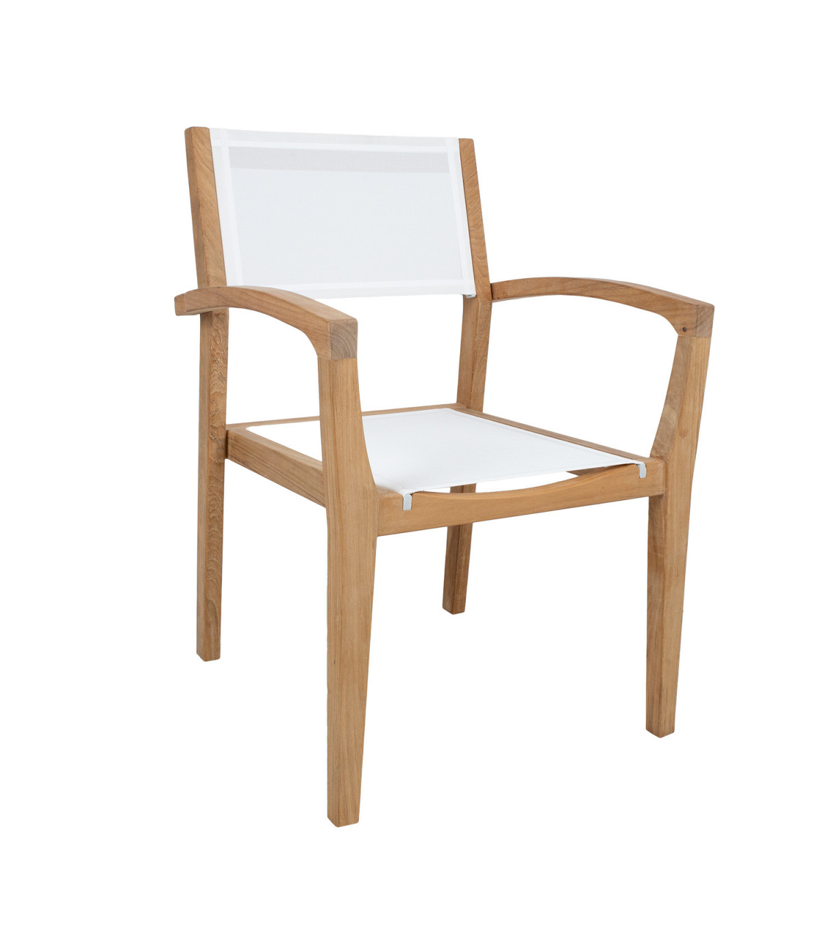 Söögilauakomplekt BALI laud ja 6 tooli. Laua mõõdud on 220x100xH75cm. Laud on valmistatud hoolikalt valitud küpsest tiikpuust. Puidu peenlihvitud pind on täielikult naturaalne. Tänu suurele looduslike õlide sisaldusele on tiikpuu väga vastupidav niiskuse ning puidukahjurite suhtes ning ei vaja täiendavat viimistlemist või õlitamist. Tooli üldmõõdud on 62x62xH91cm. Istme laius 46cm, istme sügavus 52cm, istme kõrgus 45cm. Seljatoe kõrgus 49cm. Käetugede kõrgus maast 68cm. Kaalupiirang 120kg. Toolid on virnastatavad. Tooli raam on valmistatud tiikpuust. Iste ja seljatugi on valmistatud valgest batylinest. Batyline materjali kõige olulisem omadus on selle nõtkus ja optimaalne istumismugavus. Lisaks erakordsele mehaanilisele tugevusele on materjalil kõrge keemiline vastupidavus. Sünteetiline kate tagab ülikõrge ilmastiku- ja UV-kindluse. Batyline ei ima niiskust, tänu sellele kuivab materjal väga kiiresti ja on maksimaalselt pleki- ja hallituskindel ning lihtsalt puhastatav. Tiikpuu talub väga hästi erinevaid ilmastikutingimusi ja säilitab oma suurepärase välimuse ja parimad omadused pikkadeks aastateks. Mida küpsem on puit, seda suurem on selle tihedus ja õli sisaldus ja seda vastupidavam ja stabiilsem on see ilmastikutingimuste suhtes. Päikesevalguse ja niiskuse mõjul muutub puidu pind aja jooksul kaunilt hõbehalliks. Selline värvimuutus on loomulik ning ei mõjuta puidu kvaliteeti. HOOLDUS: puhastage mööblit regulaarselt, kaitske liigniiskuse ja UV kiirguse eest. Puidust pindade värskendamiseks võib need soovikorral kergelt üle lihvida. Välitingimustes kasutatava mööbli eluea pikendamiseks soovitame kasutada välimööbli katteid. HOIUSTAMINE: suvehooaja lõppedes soovitame aiamööblit hoiustada siseruumides. Puhastage ja kuivatage mööbel enne hoiule panekut. Kasutage hoiustamiseks kuiva ning hea ventilatsiooniga ruumi.