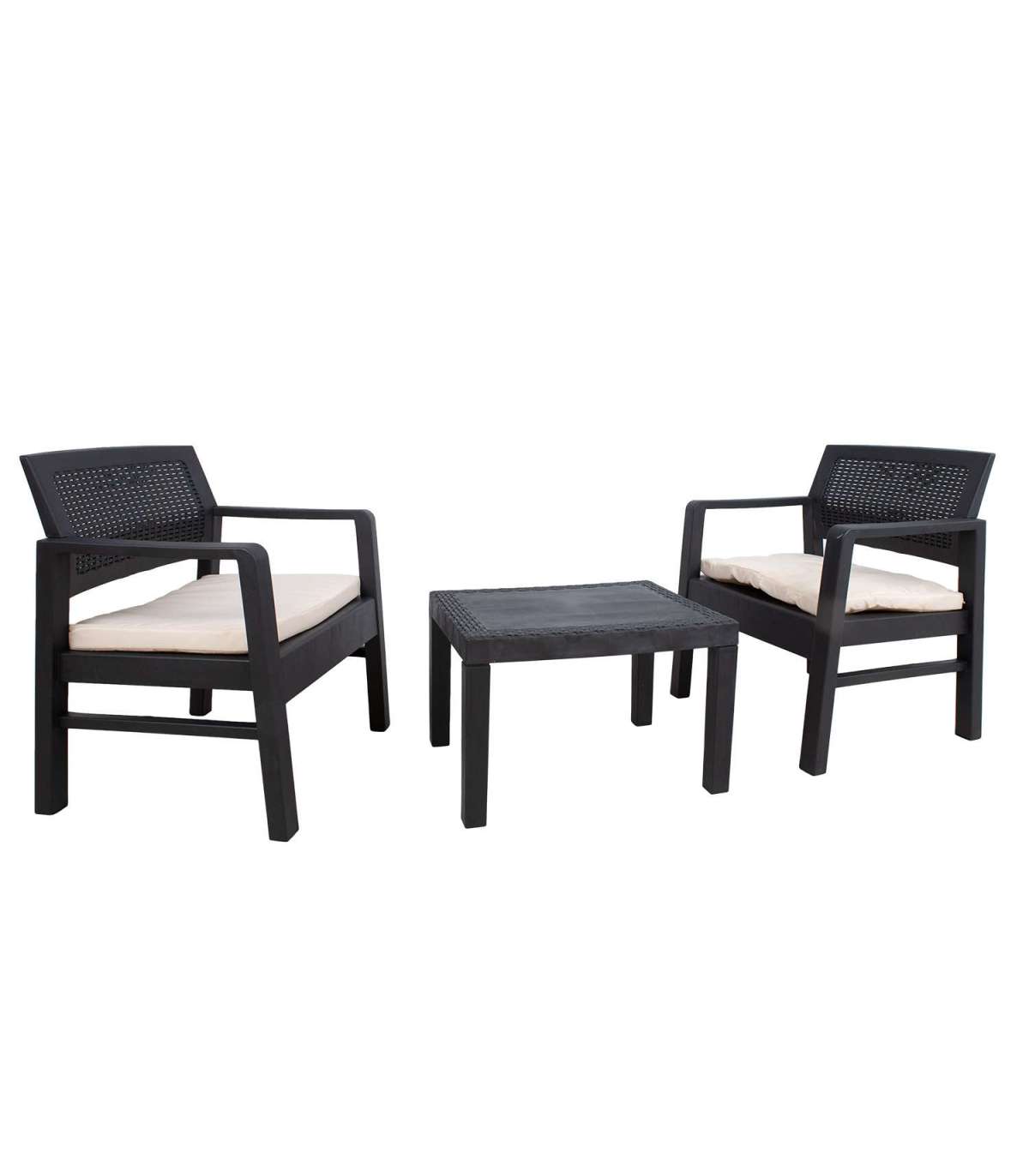 Aiamööblikomplekt KRAKA laud ja 2 tooli, hall plastik. Tooli mõõdud on 63x58xH74cm, istme laius 52cm, istme sügavus 51cm, istme kõrgus 37cm, käetoe kõrgus maast 58,5cm. Laua mõõdud 59x46xH40cm. Komplekti kuulub 2 istmepatja. Padja mõõdud 55x45xH4cm. Kaalupiirang ühel istekohal 120kg. Materjal: polüpropüleen (PP). HOOLDUS: plastikmööbel ei vaja erilist hooldust. Puhastage pinnad regulaarselt vee ja lahja pesuvahendi lahusega. Ärge kasutage pleegitavaid või abrasiivseid puhastusvahendeid. HOIUSTAMINE: suvehooaja lõppedes soovitame aiamööblit hoiustada siseruumides. Puhastage ja kuivatage mööbel enne hoiule panekut. Kasutage hoiustamiseks kuiva ning hea ventilatsiooniga ruumi.