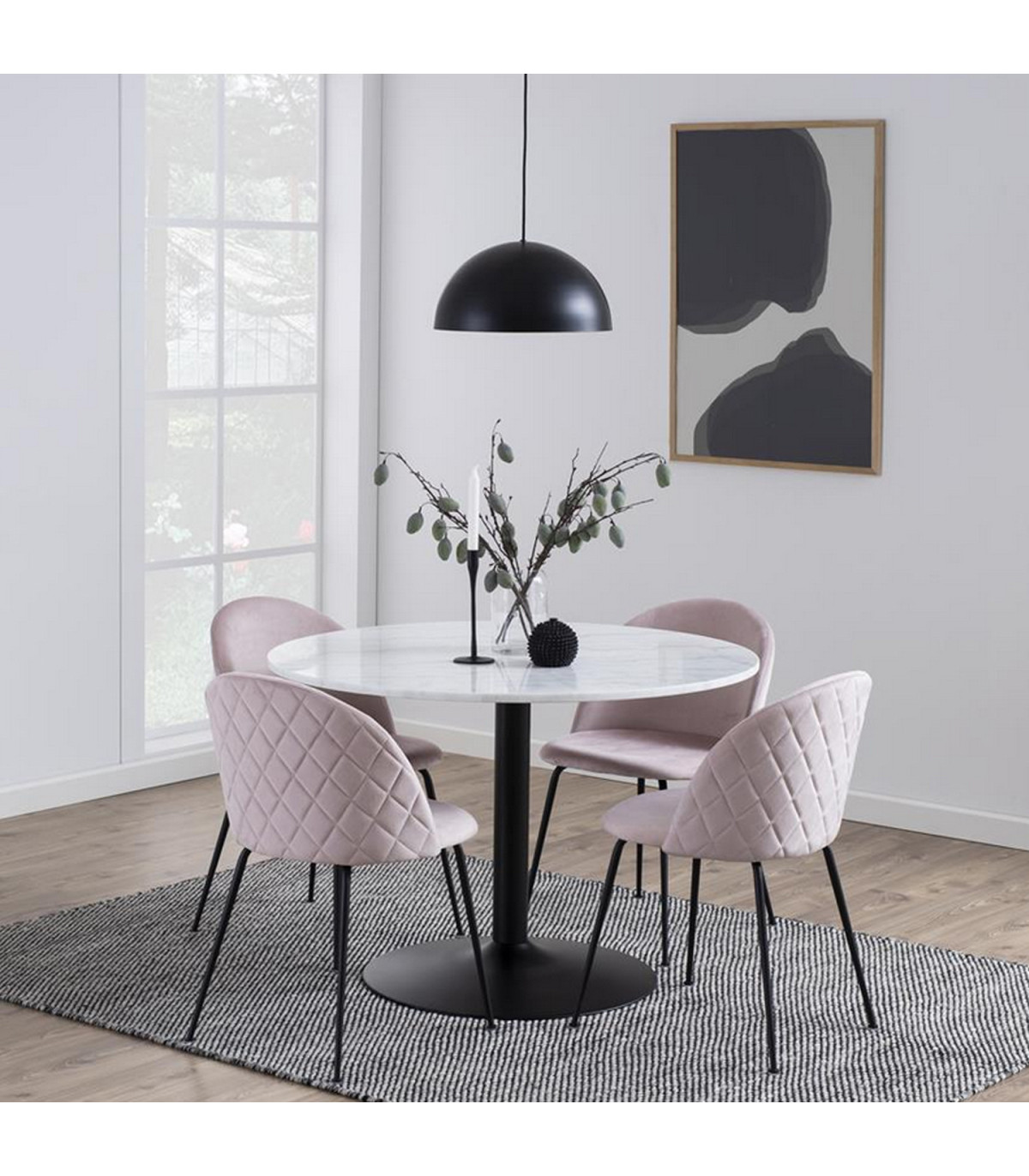 Valge marmori ja ümara kuju kombinatsioon mõjub alati elegantselt. Kaasaegse ilmega söögilaud lisab igasse koju eksklusiivsust. Pulbervärvitud jalg täiustab laua välimust ja muudab selle stabiilseks. Lauaplaat: Guangxi marmor, valge. Mõõdud D110x75cm.