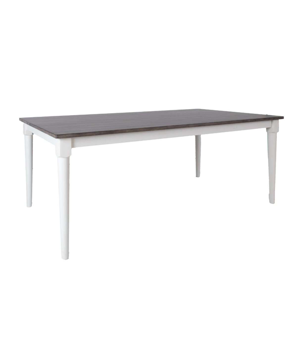 Söögilaud JANELLE 183x91xH75cm, hall/valge. Lauaplaat: halli värviga viimistletud mööbliplaat. Laua jalad ja raam on valmistatud kummipuust ja värvitud valgeks.