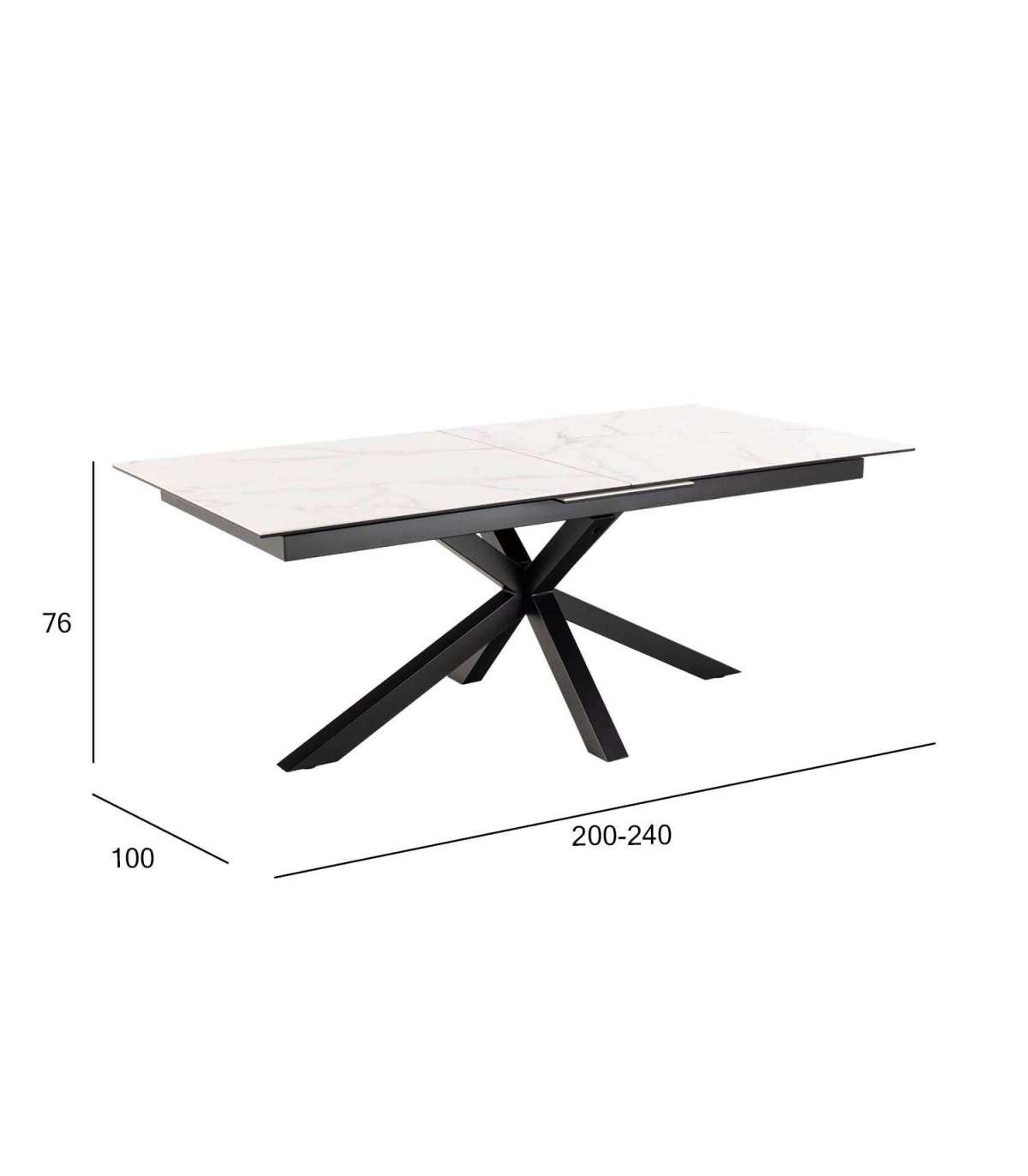 Söögilaudade puhul on praktilisus ja disain võrdselt olulised. See pikendatav laud on nii funktsionaalne kui ka esteetiliselt silmapaistev. Kui teil on külalisi, tõmmake lihtsalt õrnalt laua otsast, et pikendus ilmuks keskele. Valge marmorist välimusega keraamiline lauaplaat. Skulptuurne ristalus sobib ideaalselt laua disainiga. Moodne laud on kuuma- ja kriimustuskindel ning nõuab vähe hooldust. Mõõdud on 240x100xH76cm. HOOLDUS: Keraamika on kuuma- ja kriimustuskindel materjal, mis vajab minimaalset hooldust. Kui tekivad plekid, pühkige pind puhtaks kuivaks väänatud kiudlapiga või paberrätikuga. Pinnakahjustuste vältimiseks kasutage klaasialuseid. Alus: Kasutage igapäevaseks puhastamiseks seebiveest kuivaks väänatud lappi. Rooste vältimiseks pühkige pind kuivaks. Ärge hõõruge pinda kõvade esemetega.