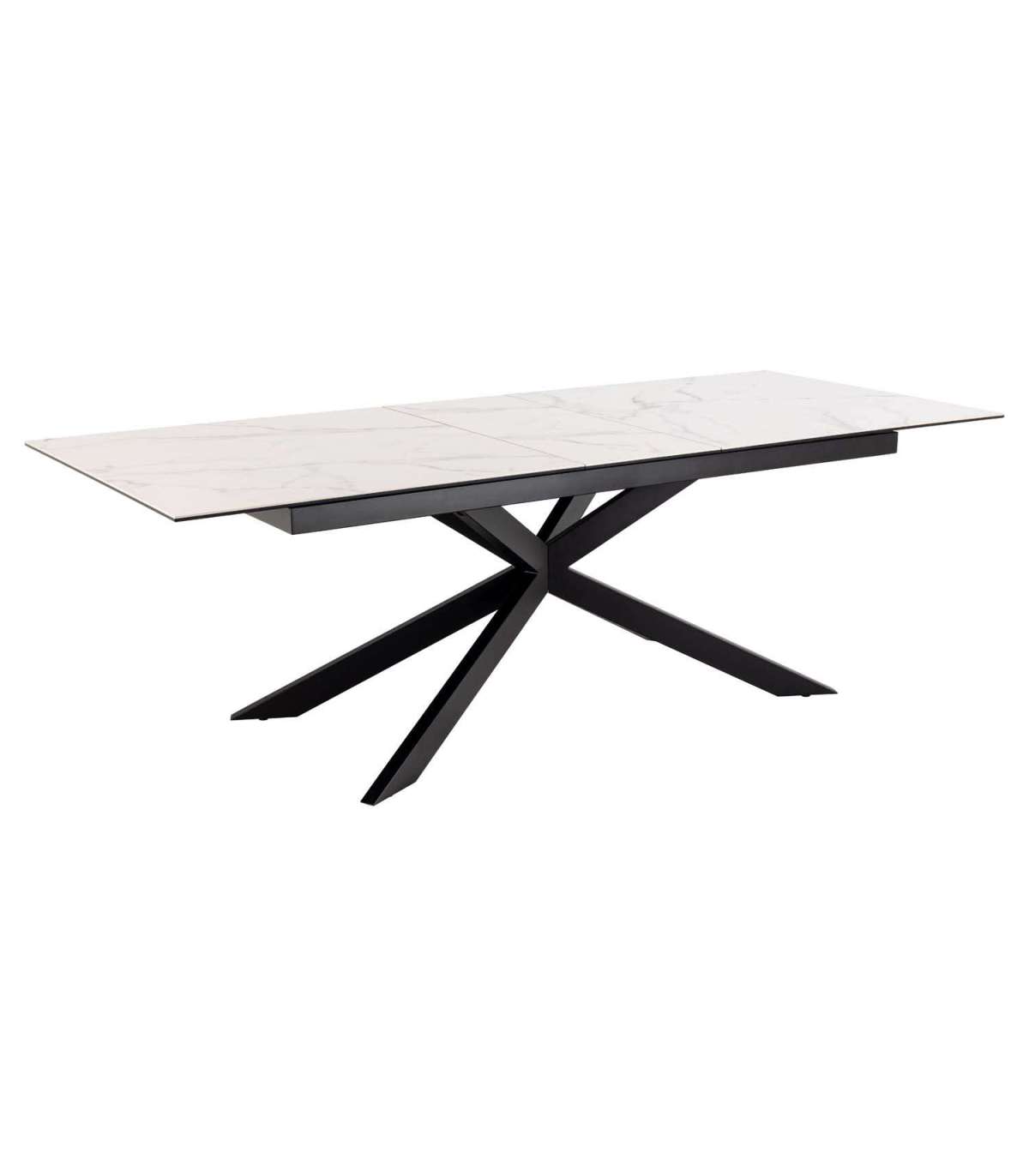 Söögilaual on valge keraamiline lauaplaat. Peale kauni välimuse on pind kuuma- ja kriimustuskindel. Lauda saab tänu sünkroonsele pikendusele hõlpsasti pikendada. Lihtsalt tõmmake õrnalt laua otsast ja pikendus tuleb keskele. Laua välimusele lisab kontrastsust musta värvi terasest ristalus. Materjal: keraamika. Jalad: pulbervärvitud teras. Toote mõõdud on 240x100xH76cm. HOOLDUS: Keraamika on kuuma- ja kriimustuskindel materjal, mis vajab minimaalset hooldust. Kui tekivad plekid, pühkige pind puhtaks kuivaks väänatud kiudlapiga või paberrätikuga. Pinnakahjustuste vältimiseks kasutage klaasialuseid. Alus: Kasutage igapäevaseks puhastamiseks seebiveest kuivaks väänatud lappi. Rooste vältimiseks pühkige pind kuivaks. Ärge hõõruge pinda kõvade esemetega.