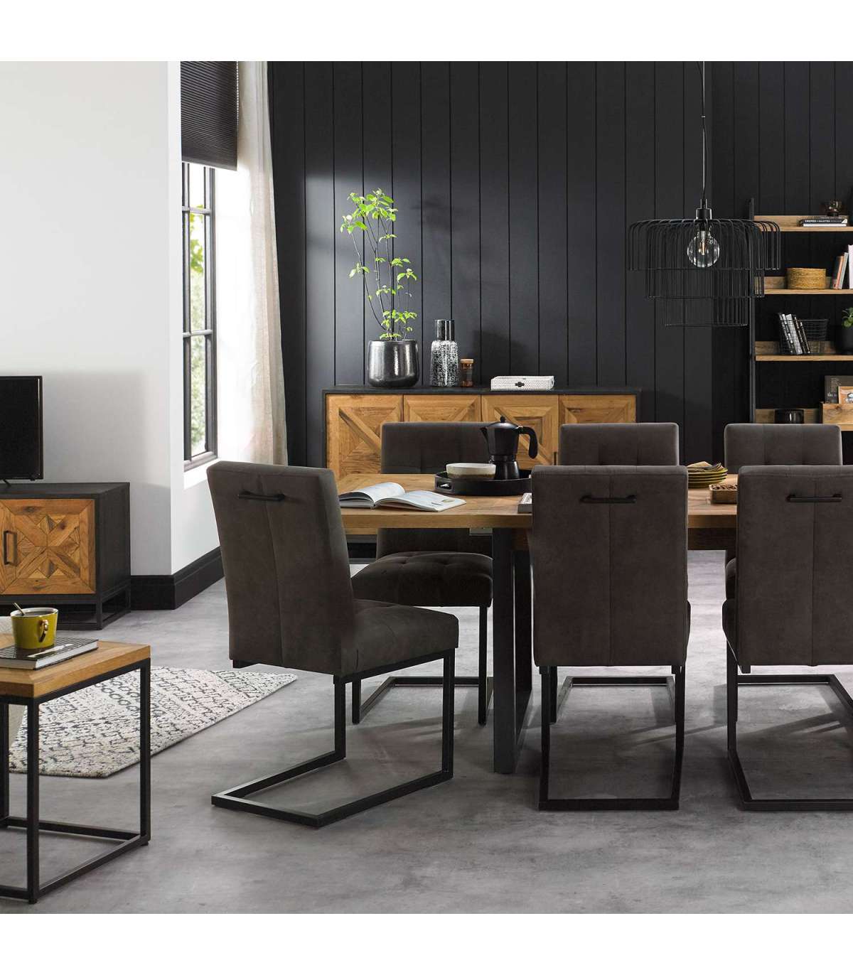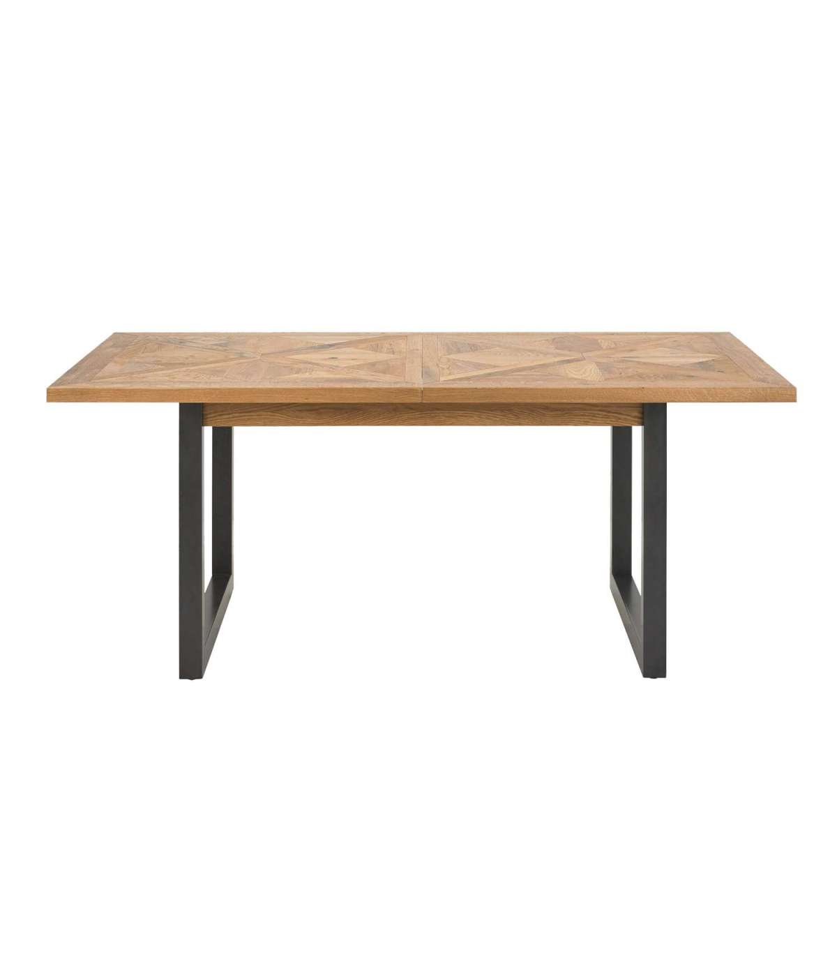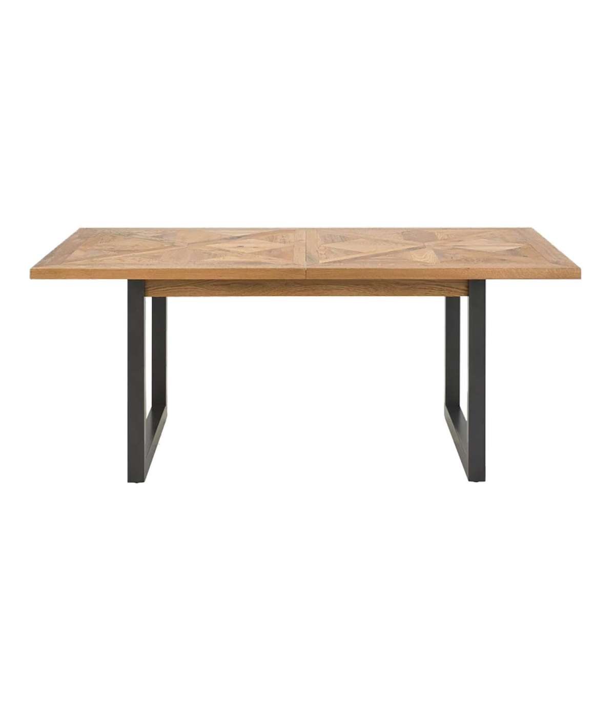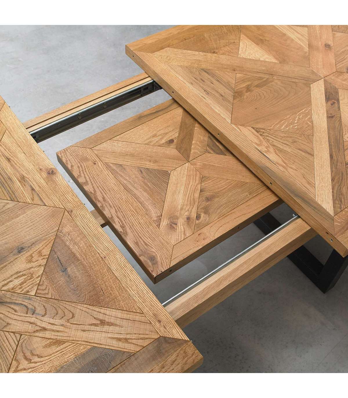 Pikendatav söögilaud INDUS 190/240x100xH76,5cm. Eksklusiivne, naturaalse mosaiik tammespooniga lauaplaat on kauni harjatud töötlusega ning õlitatud. Lauaplaadi aluskonstruktsioon on valmistatud täistammepuidust. Laud on keskelt pikendatav. Lauaplaadi pooled liiguvad metallsiinidel, pikendusosa on paigutatud lauaplaadi alla. Laual on pulbervärvitud metallist jalad.